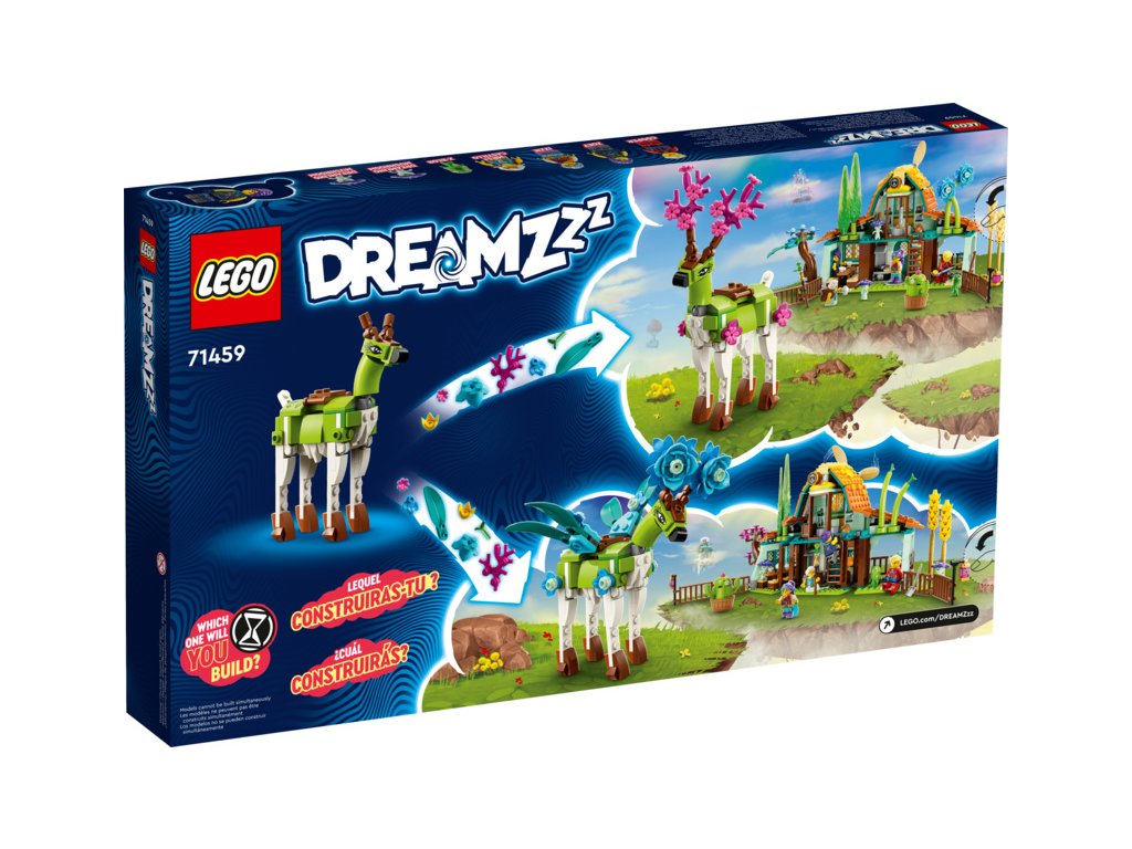 Stavebnice LEGO® DREAMZzz™ (71459) Stáj snových stvoření je inspirována televizním seriálem a zavádí děti od 8 let do kouzelného světa plného přírodních detailů a nových kamarádů, kde se setkají s bájnými stvořeními a postarají se o kouzelné květiny. Je plná úžasných detailů, které podnítí dětskou představivost. Děti nadchne prozkoumávání funkčního větrného mlýnu, stodoly (s otevíracími okny a vraty) a seznamování se s bájnými novými kamarády, jako jsou 2 stvoření ze Světa snů. 1 stavebnice,2 varianty ke stavění Stavebnice umožňuje 2 varianty ke stavění. Děti mají na výběr mezi ozdobením jelena jako létajícího pegase nebo nádherného ochránce lesa. Užijí si tak dvojnásobnou dobu hraní a rozvíjení kreativity. Fantastické detaily Jelen má pohyblivou hlavu a nohy a snadno se tak přizpůsobí hraní a místo paroží mu můžete nasadit květiny ze stáje. Součástí jsou propracované minifigurky Izzie, Zoey, Coopera a paní Castillové.