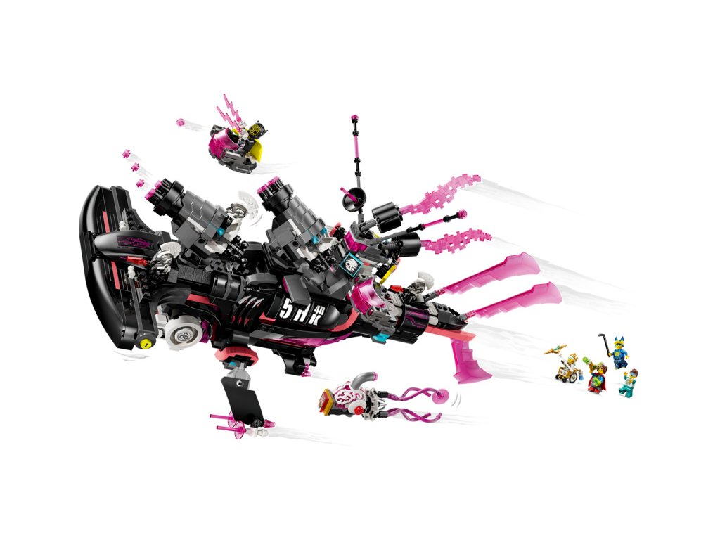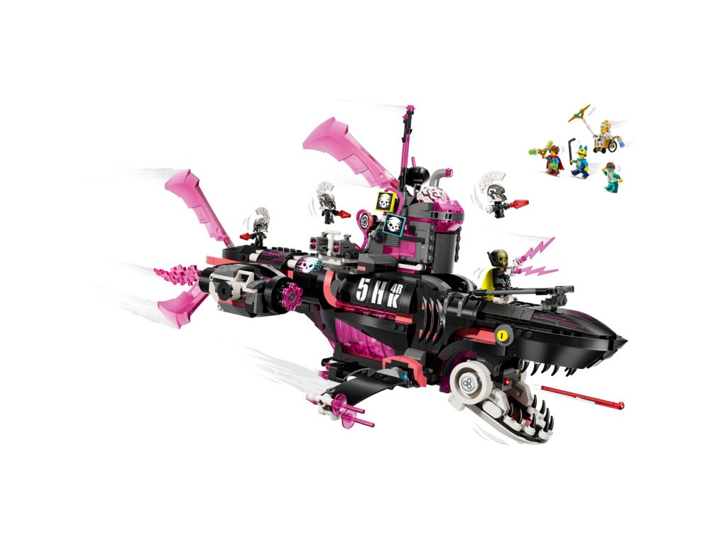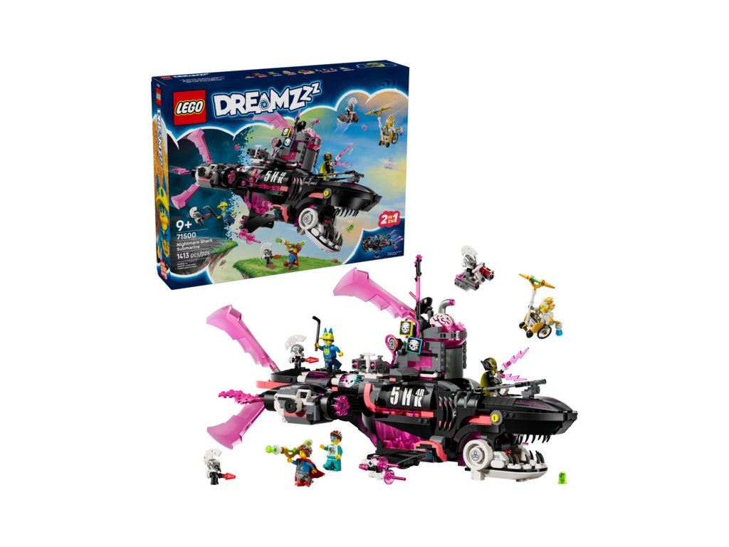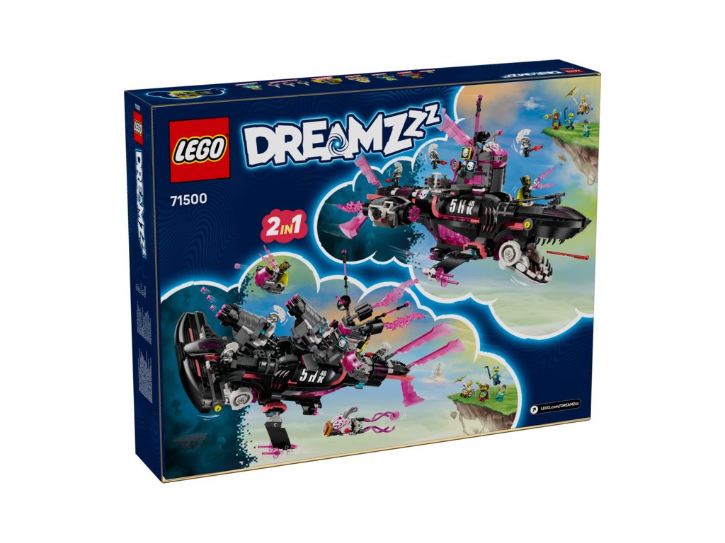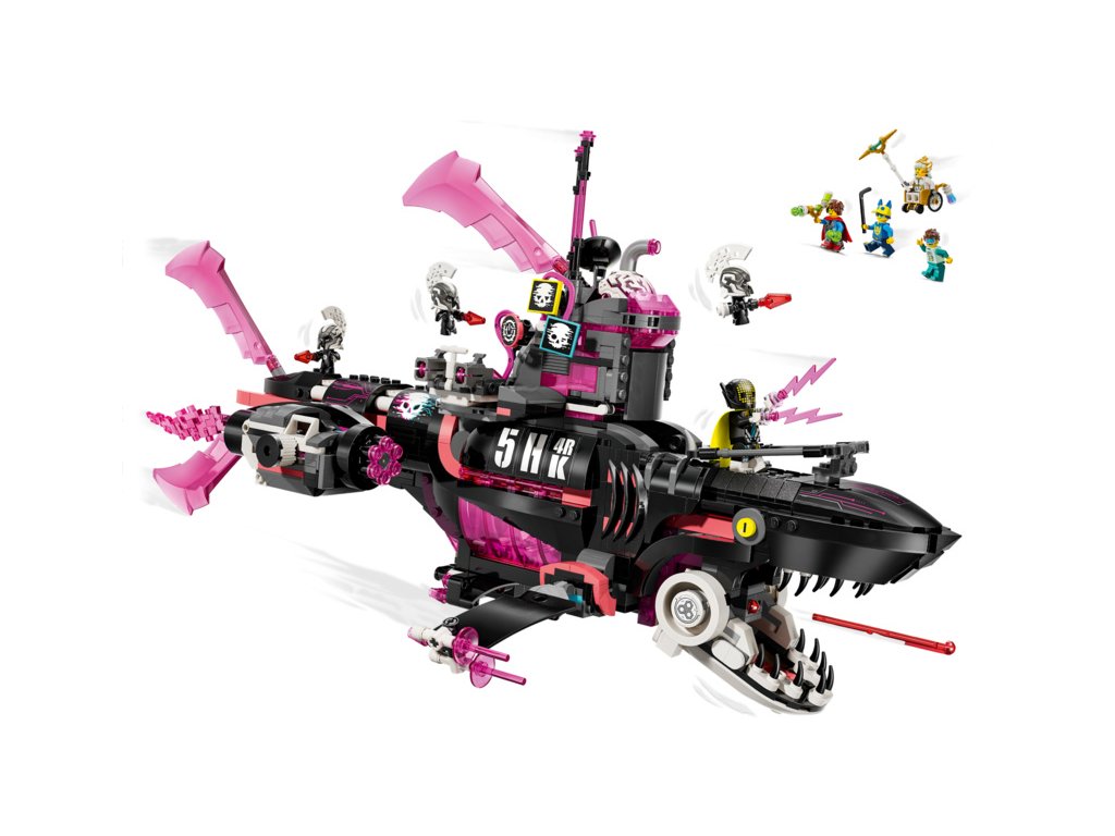 Malí snílci si postaví model žraloka a pak ho promění na žraločkoponorku nebo bitevní loď se žraloky kladivouny. Mezi detaily stavebnice patří odnímatelná miniaturní letadla, vystřelovače, rakety, které lze vystřelit ze žraločí tlamy, otevírací kokpit a vězení uvnitř žraloka. Součástí jsou také modulární vystřelovače kompatibilní s dalšími stavebnicemi z řady LEGO DREAMZzz 2025 (prodávají se samostatně). Minifigurky Matea, Logana, Astrid, Rozbíječe snů, snílků a figurky Z-Fleka a 3 Kybervěcí vdechnou stavebnici život a podnítí kreativní hraní.