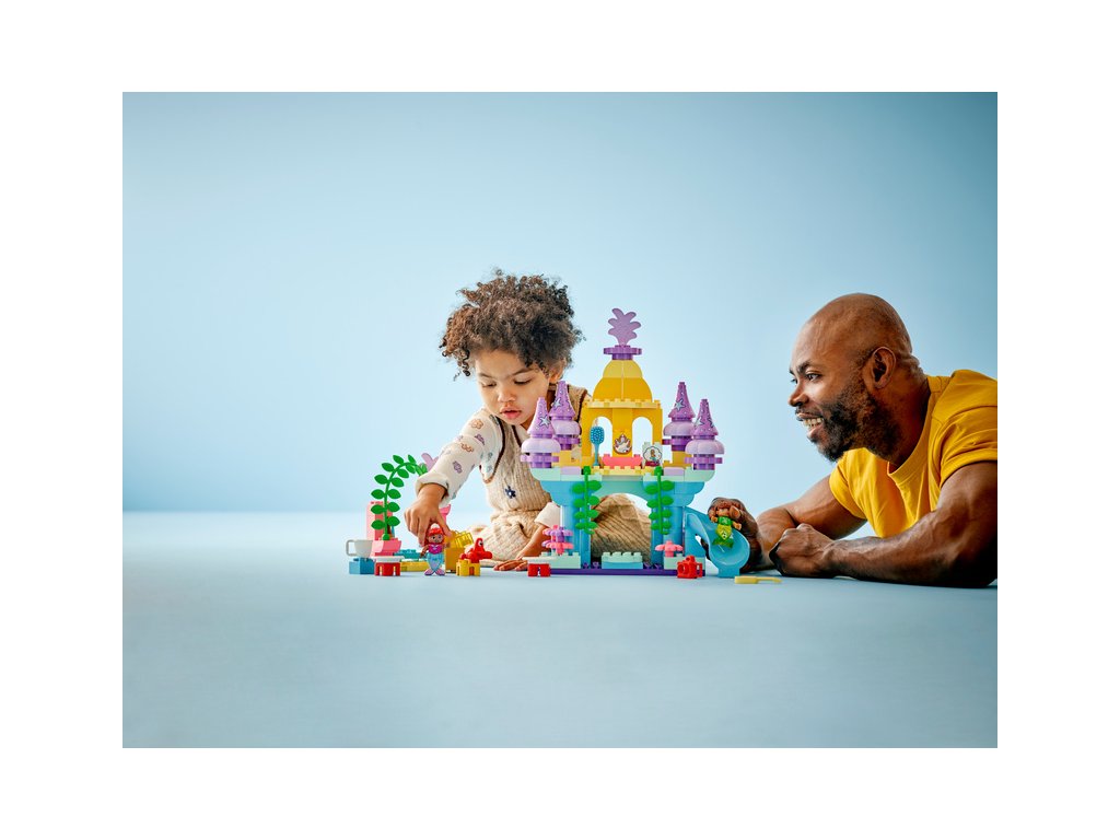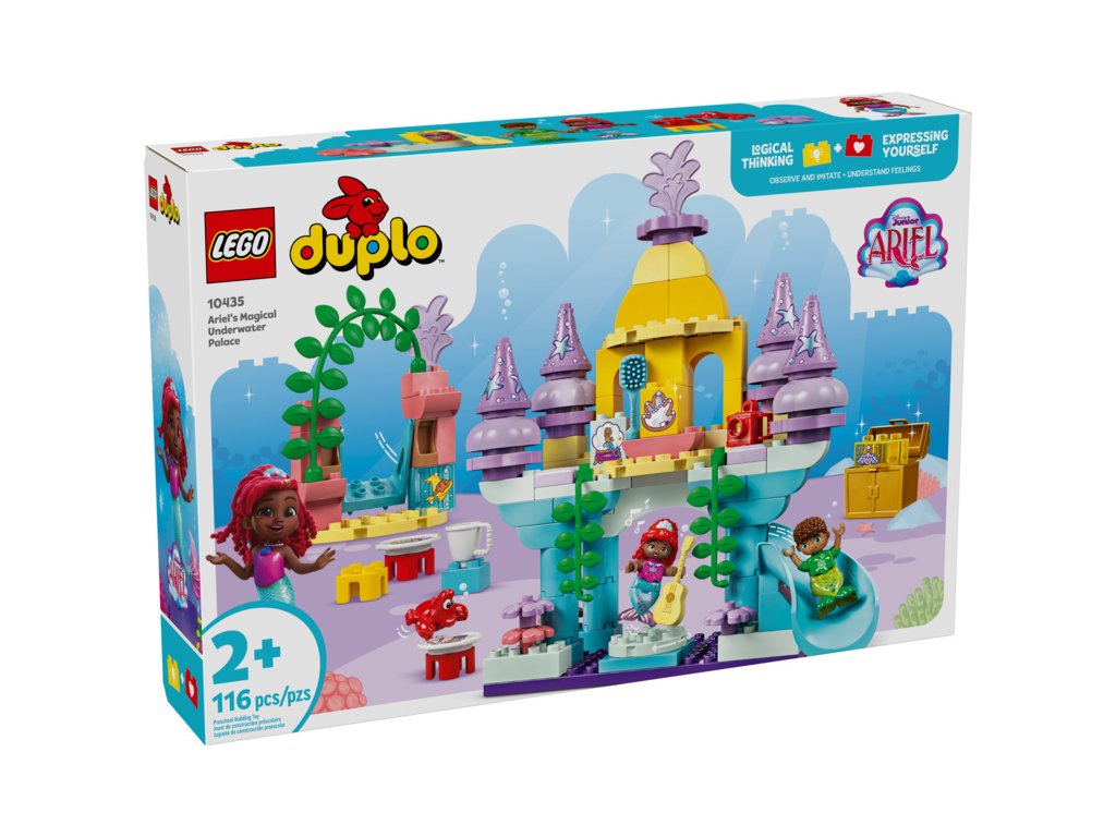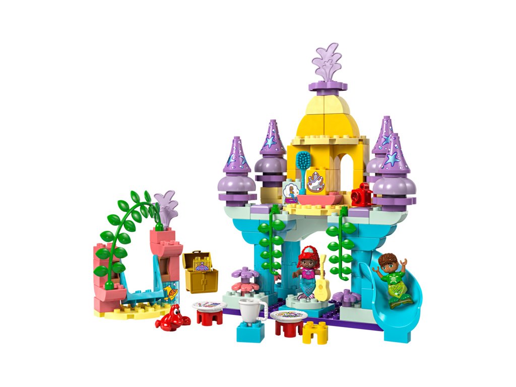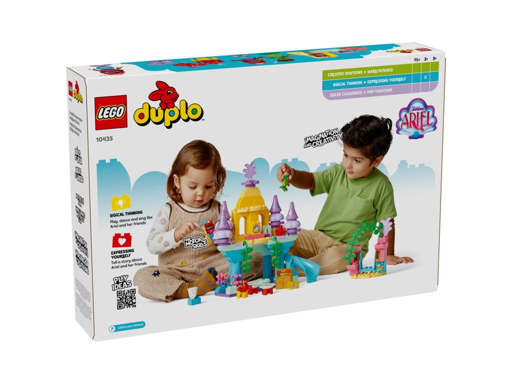 Ponořte se s fanoušky Disneyho Malé mořské víly do podmořského světa plného zábavy se stavebnicí LEGO® DUPLO® ǀ Disney (10435) Arielin kouzelný podmořský palác. Děti od 2 let využijí své logické myšlení a sebevyjádření při stavění scén z televizního seriálu Ariel z dílny Disney Junior.