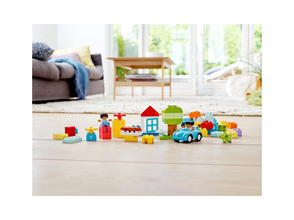 - A všechny ty podmanivé barvy, tvary, předměty, postavy a čísla lze pohodlně schovat do hezkého LEGO® DUPLO® boxu. Spojte je s dalšími sadami DUPLO pro ještě více tvořivé zábavy.