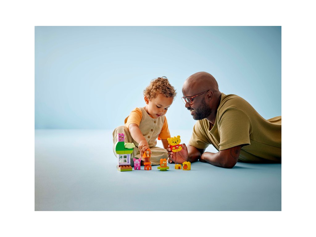 - 3 sestavitelné modely zvířátek LEGO® DUPLO® – Součástí jsou figurky milovaných postav LEGO DUPLO Disney: Medvídek Pú, Tygr a Prasátko, dárky a domek na stromě, který podněcuje zábavné a kreativní hraní