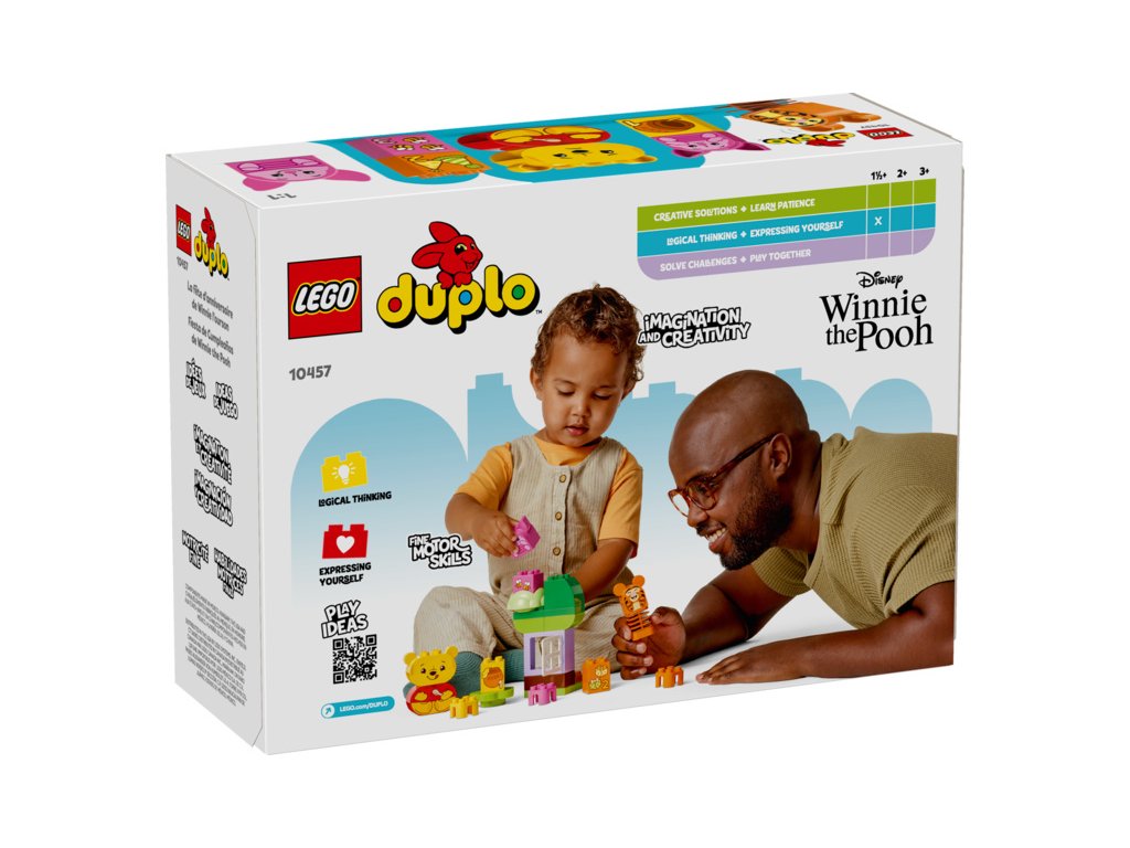 Rodiče a malé děti si užijí kreativní hraní a učení hrou se stavebnicí LEGO® DUPLO® Disney (10457) Narozeninová oslava Medvídka Pú. Tato barevná vzdělávací stavebnice pomáhá malým stavitelům od 18 měsíců procvičovat základní dovednosti a zároveň si užívat nápadité hraní.
