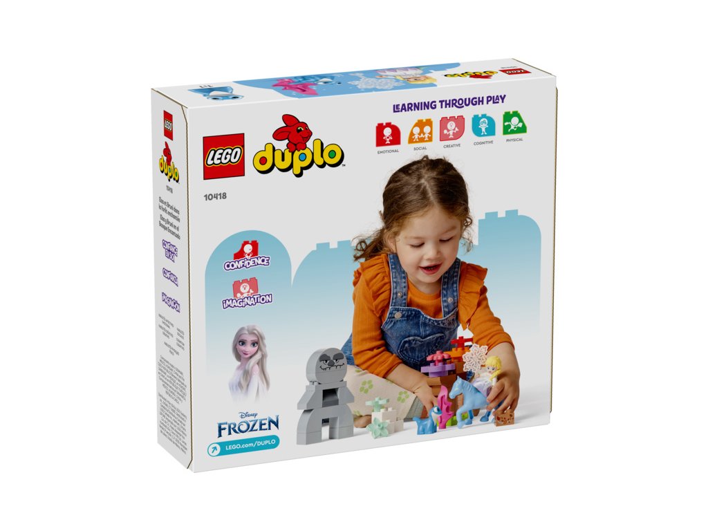 Děti od 2 let se vydají na dobrodružství se stavebnicí LEGO® DUPLO® ǀ Disney (10418) Elsa a Bruni v začarovaném lese. Tato stavebnice malé stavitele dovede do začarovaného lesa, kde se setkají s postavami z filmu Ledové království 2 z dílny studia Disney: Elsou, mlokem Brunim a kouzelným vodním koněm Nokkem.