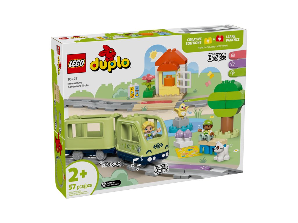 S Interaktivním dobrodružným vláčkem (10427) se děti ujmou řízení. Stavebnice je určena pro malé stavitele od 2 let a děti si s ní vyberou destinaci rodinného výletu a vydají se na cestu plnou světel, zvuků a učení.