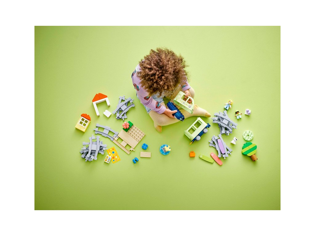 Součástí této hračky na stavění a přestavování je spousta kostek na stavění parku, pláže, železniční stanice a rodinného domu, které v malých dětech rozvíjí zvídavost a kreativní způsoby stavění. Tato vzdělávací hračka podněcuje dětskou trpělivost a zdokonaluje jemné motorické schopnosti při stavění kolejí a rozhodování o trasách, kterými se osobní vlak vydá.