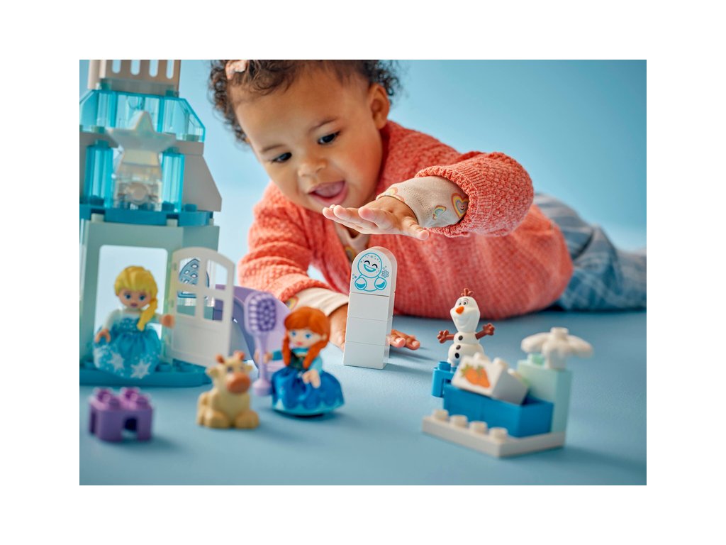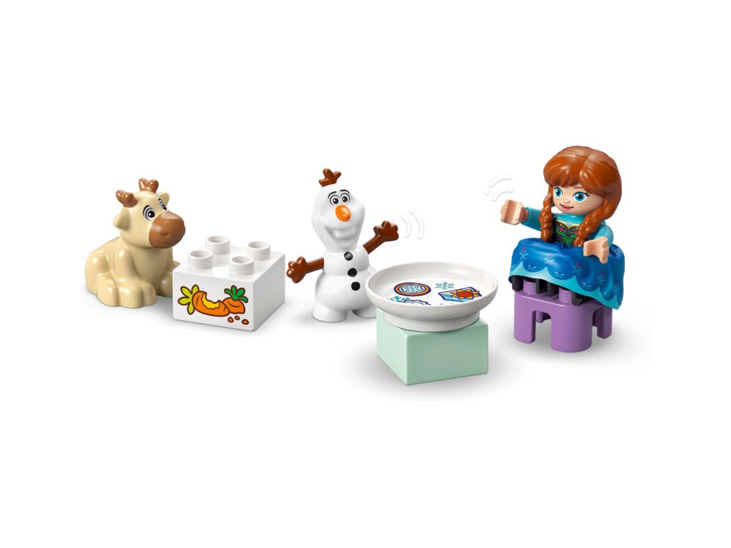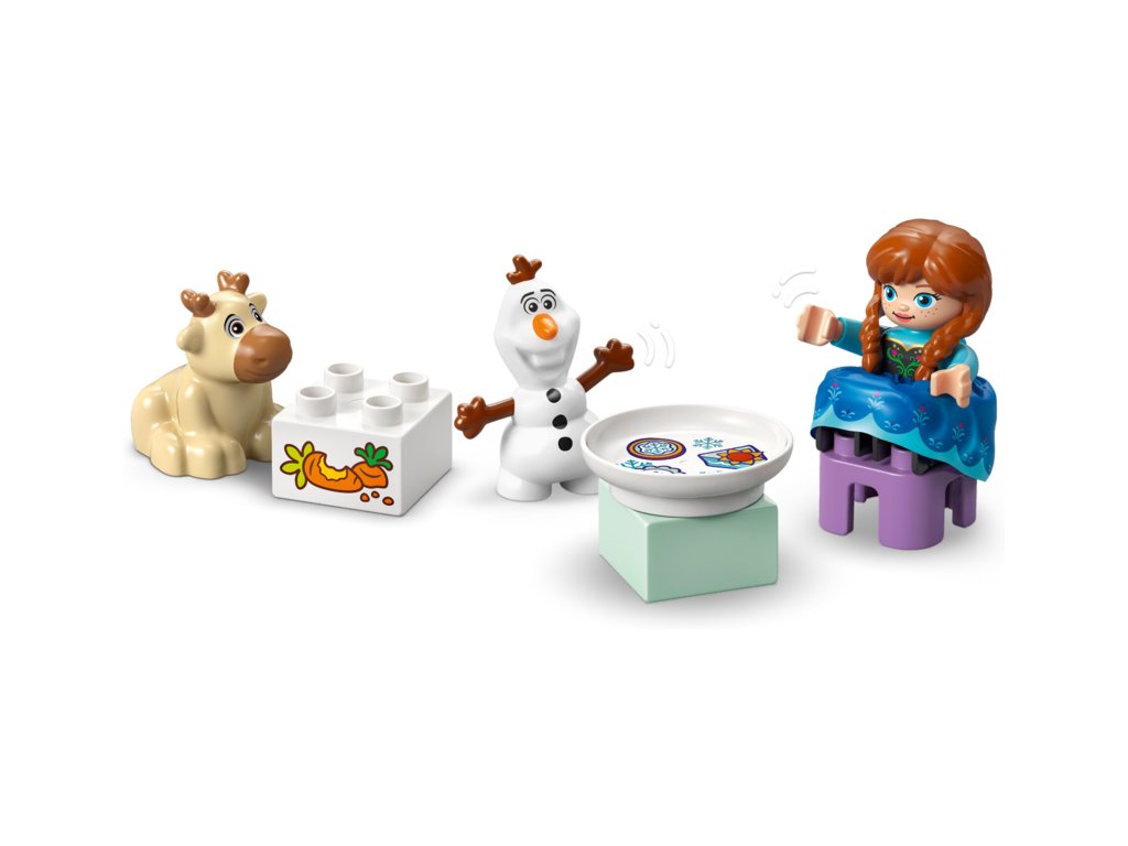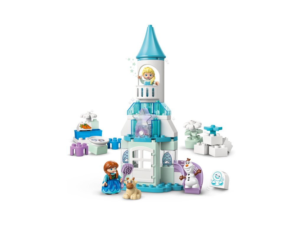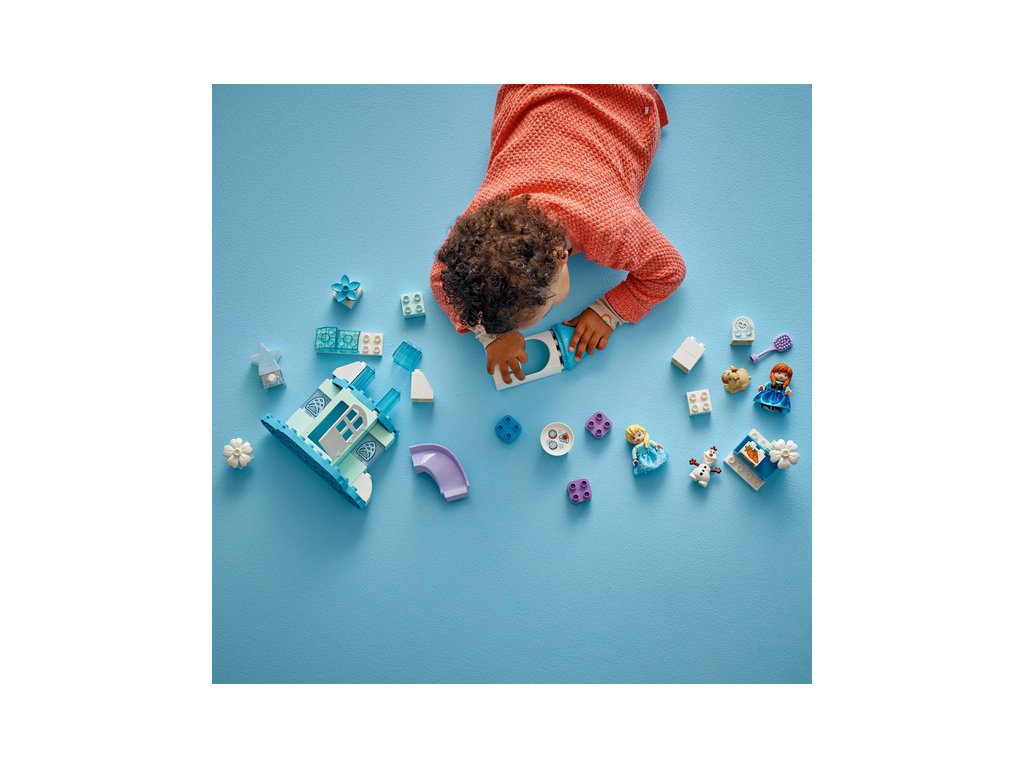 - Prvky z filmu Ledové království – Součástí stavebnice je 5 postav LEGO® DUPLO® │ Disney: Elsa, Anna, sněhuláček Marshmallow, malý Sven a Olaf, a navíc doplňky včetně skluzavky, krmítka a kartáče