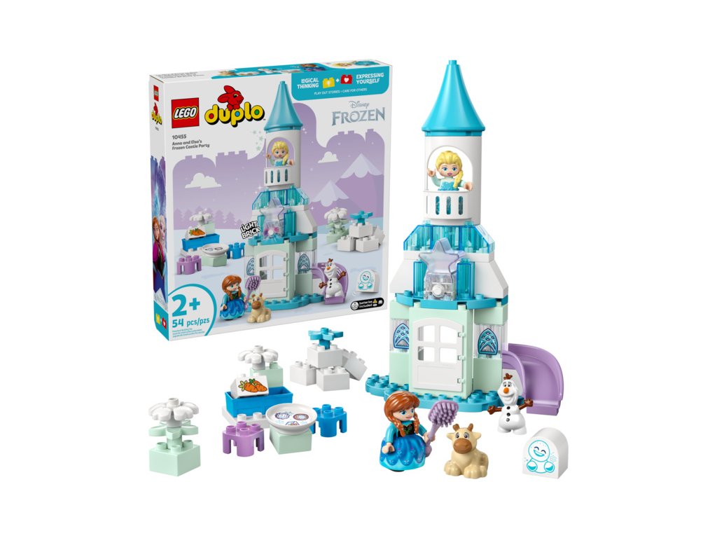 Ponořte se se svými ratolestmi do světa kreativního hraní se stavebnicí LEGO® DUPLO® │ Disney (10455) Ledové království: Anna a Elsa a oslava na hradě pro batolata. Součástí jsou postavy LEGO DUPLO │ Disney Elsy, Anny, sněhuláčka Marshmallowa, malého Svena a Olafa, se kterými si děti užijí nekonečné možnosti hraní na život na hradě a péči o malého Svena.