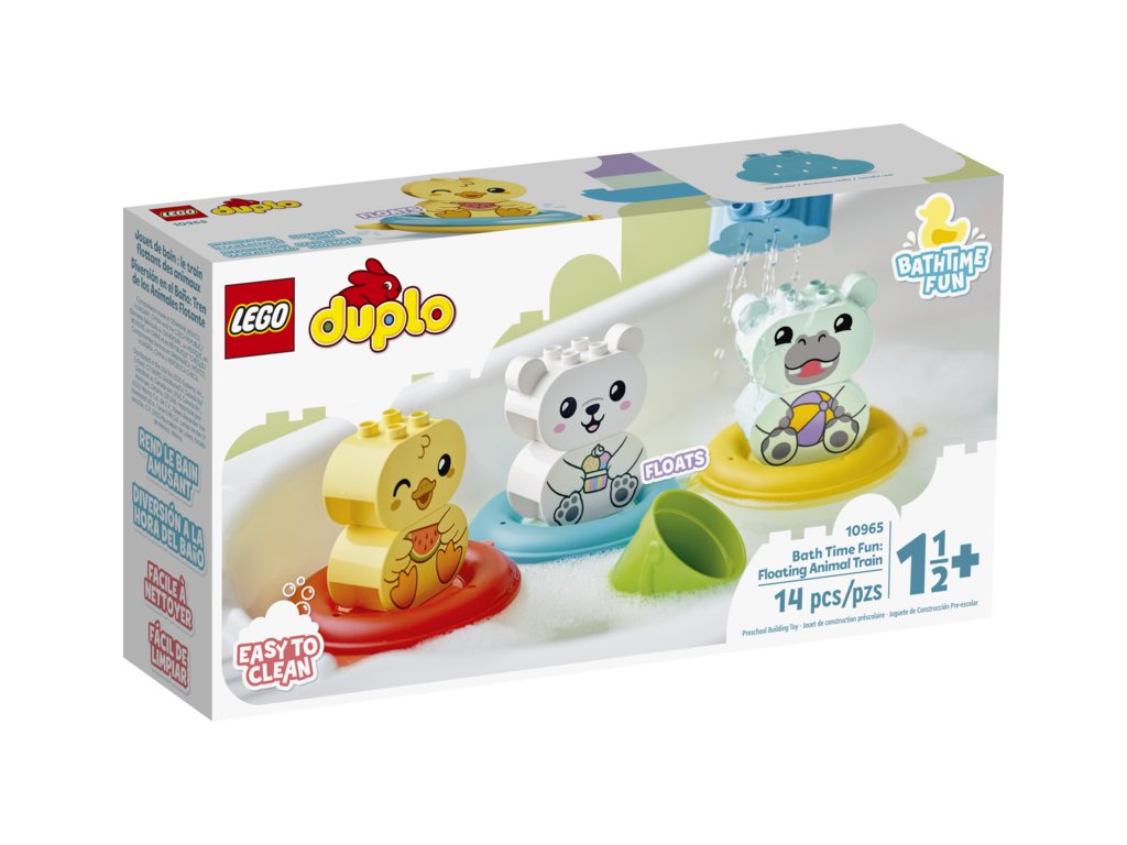 Se snadno omyvatelnou stavebnicí Legrace ve vaně: Plovoucí vláček se zvířátky (10965) z řady LEGO® DUPLO® Moje první si předškoláci od 18 měsíců užijí hraní i rozvoj dovedností.