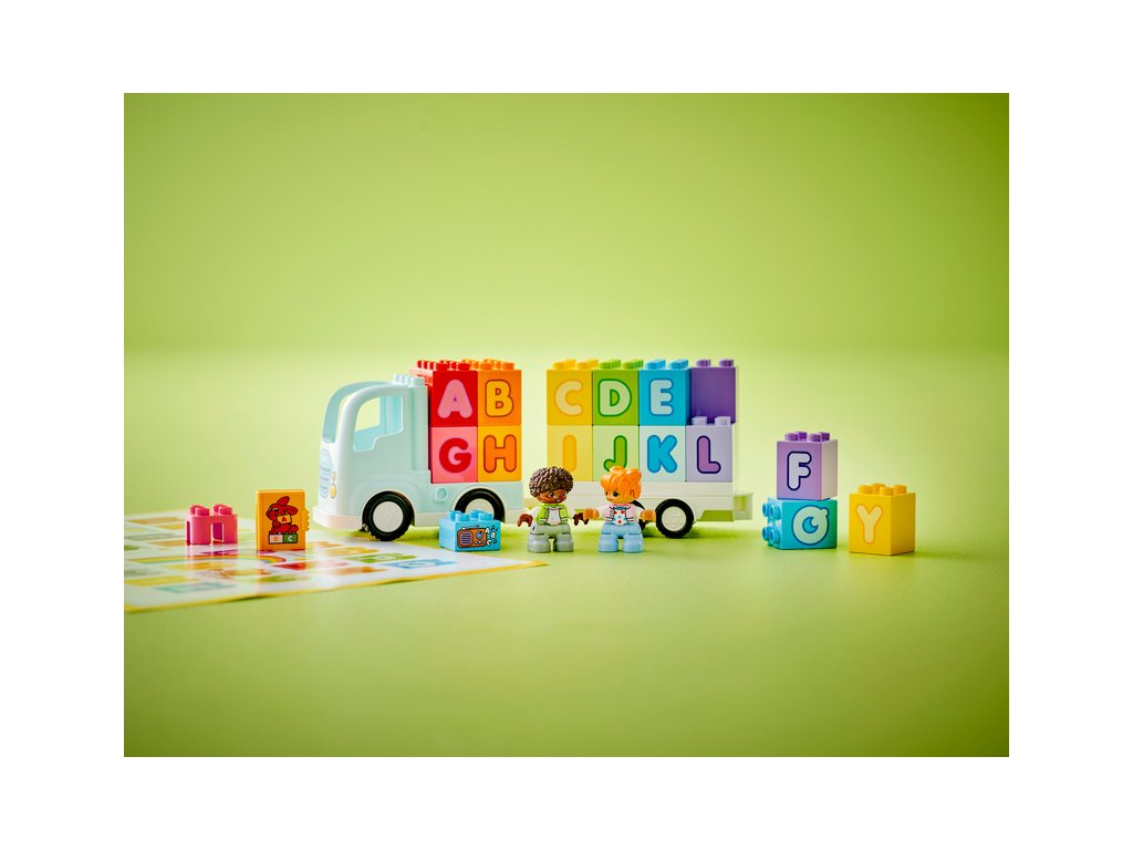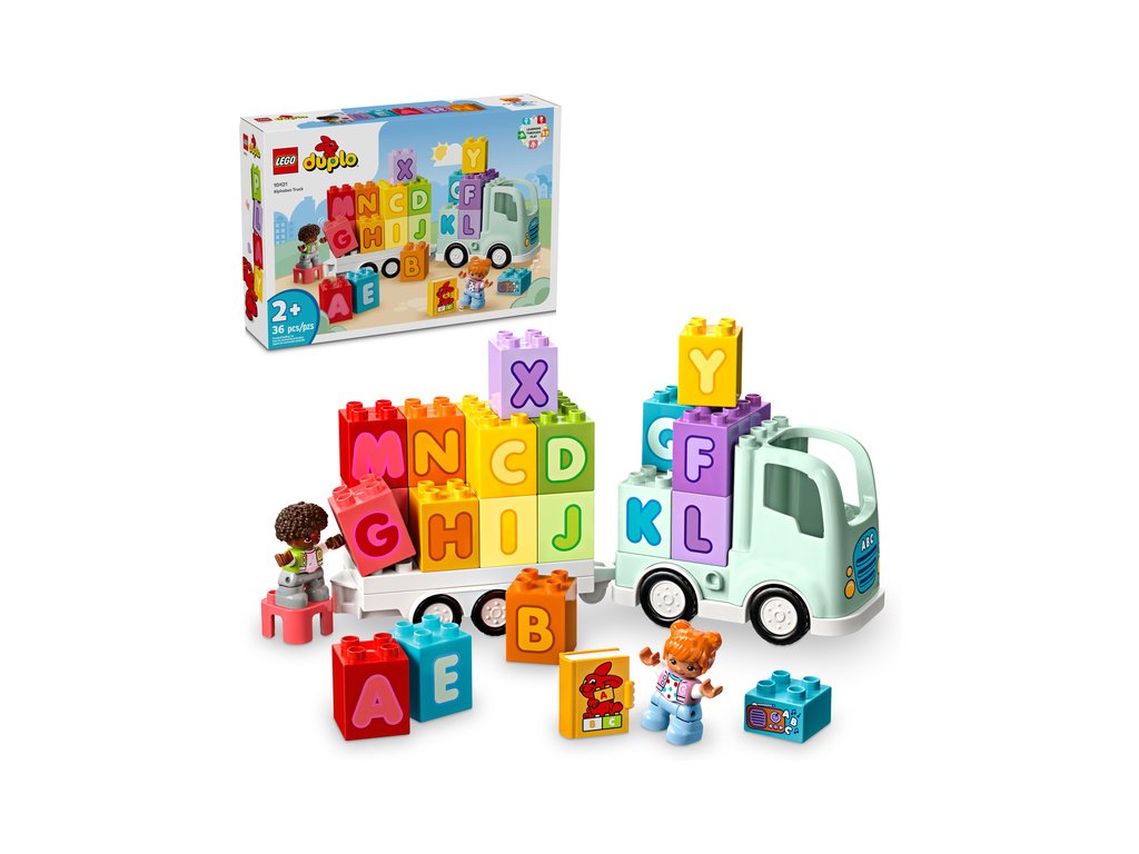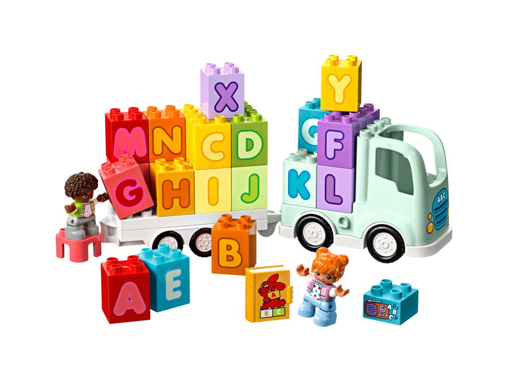 - Stavebnice, která děti naučí písmenka – Nasedněte do Náklaďáku s abecedou z řady LEGO® DUPLO® Město a připravte se na hraní plné zábavného učení abecedy pro malé stavitele od 2 let