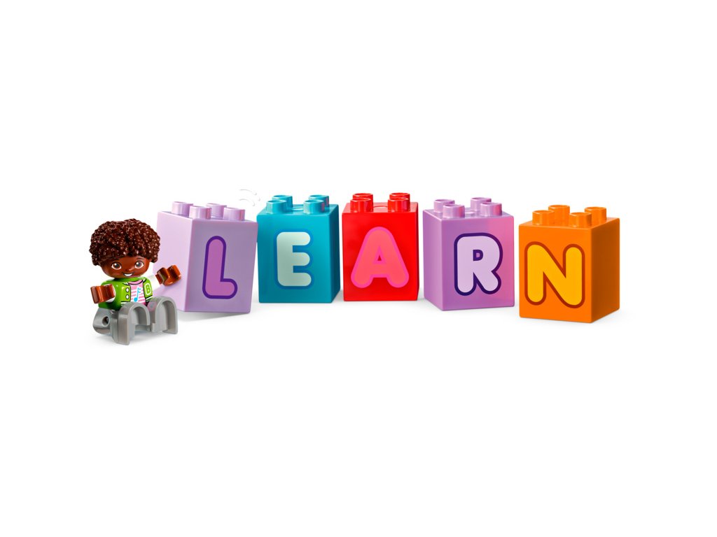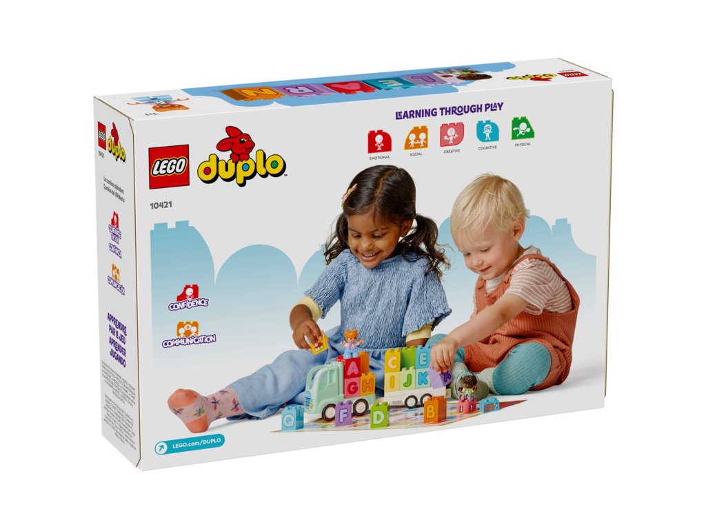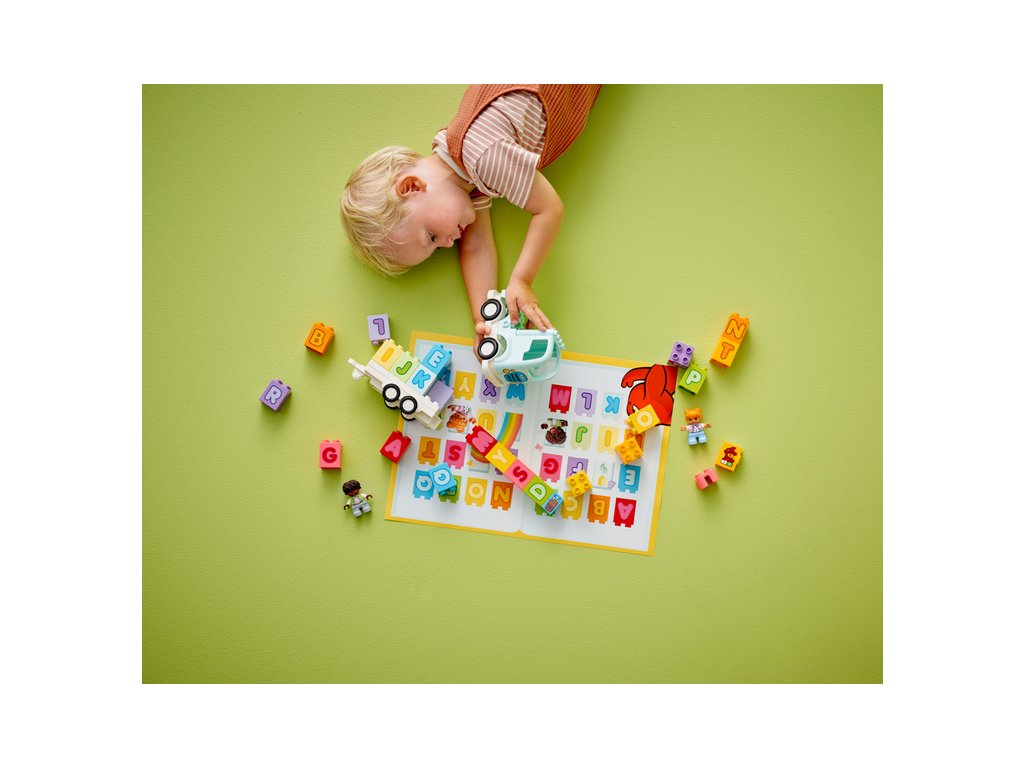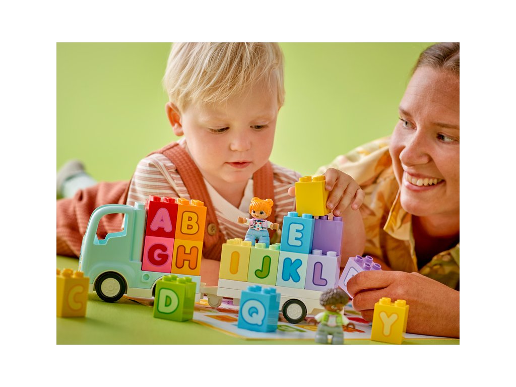 Tato kreativní hračka s abecedou přináší spoustu možností učení hrou. Malé děti si vyzkouší připojení přívěsu k náklaďáku, pomohou 2 figurkám LEGO DUPLO naskládat a vyskládat kostky a naučí se rozpoznávat písmena, barvy, zdokonalí mluvení a procvičí si jemné motorické schopnosti.