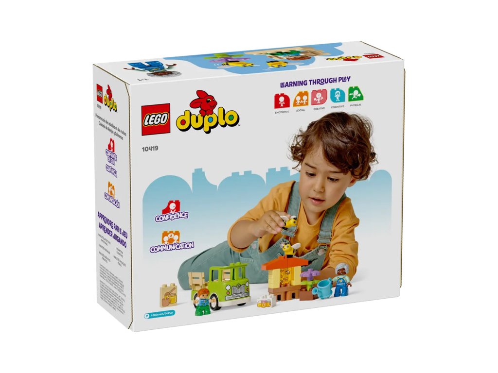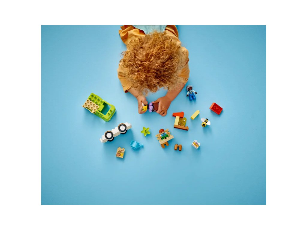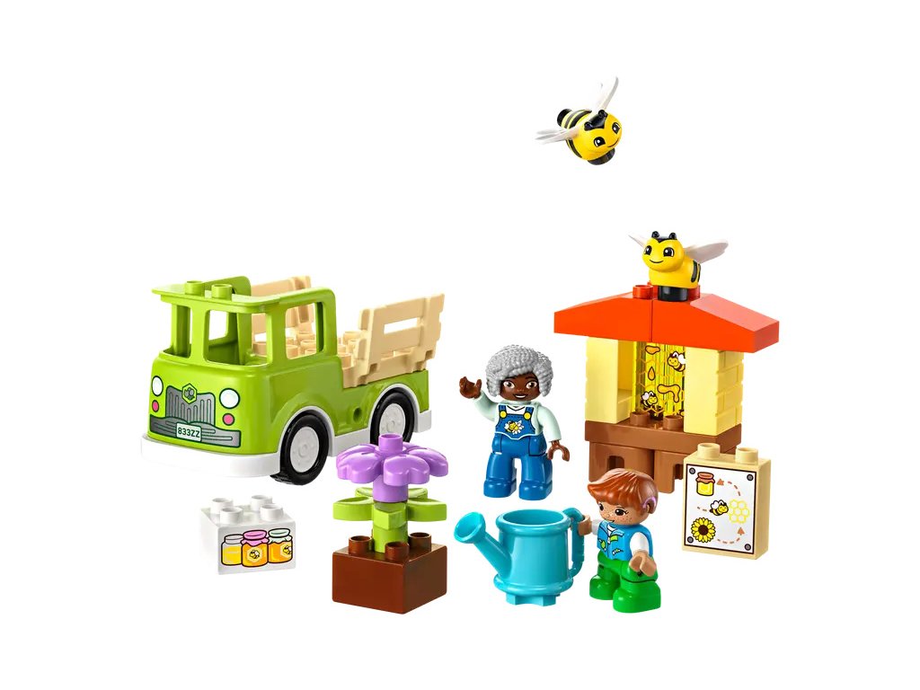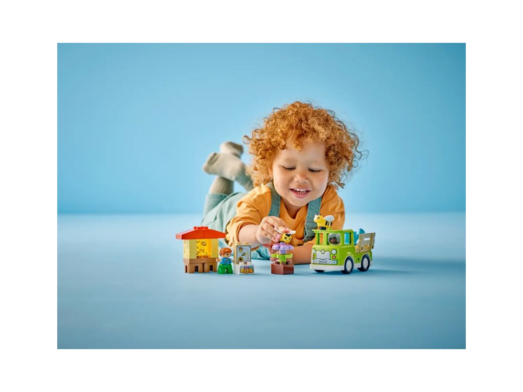 Děti poskládají stonky květin, které „rostou“, a procvičí své jemné motorické schopnosti. Užijí si hodiny zábavy při hře s včelkami, které sbírají nektar a v úlu z něj tvoří med. Nechybí ani 2 figurky LEGO DUPLO, kterým malí stavitelé pomohou sbírat med, naložit jej na model náklaďáku a odvézt ho na tržiště.