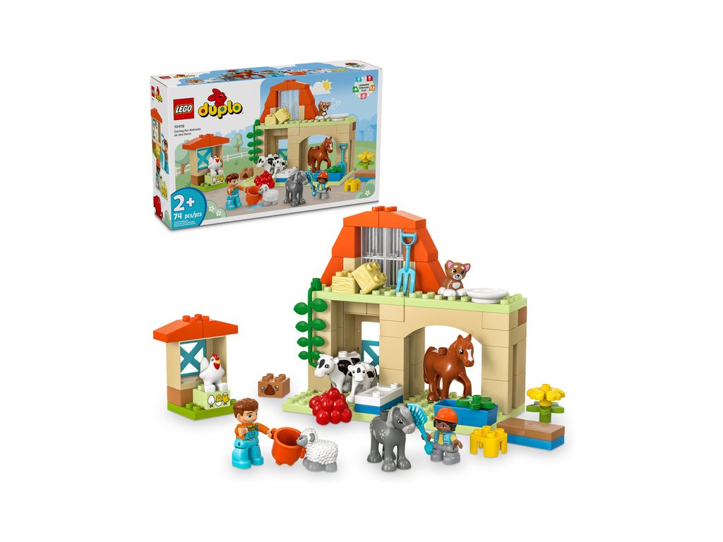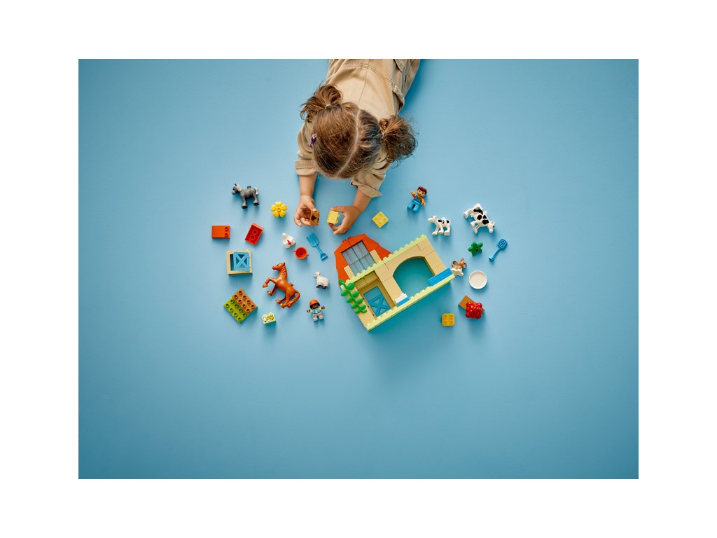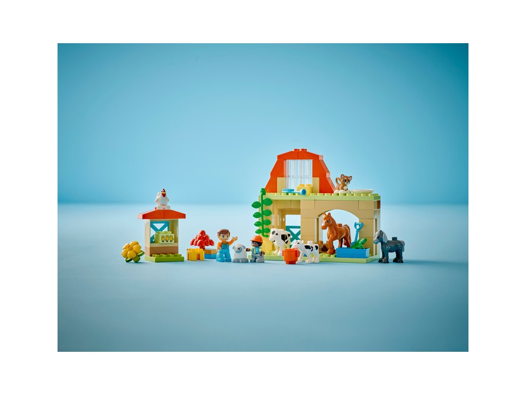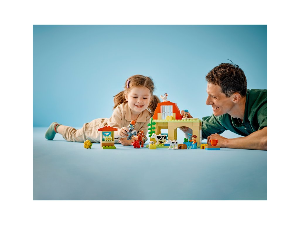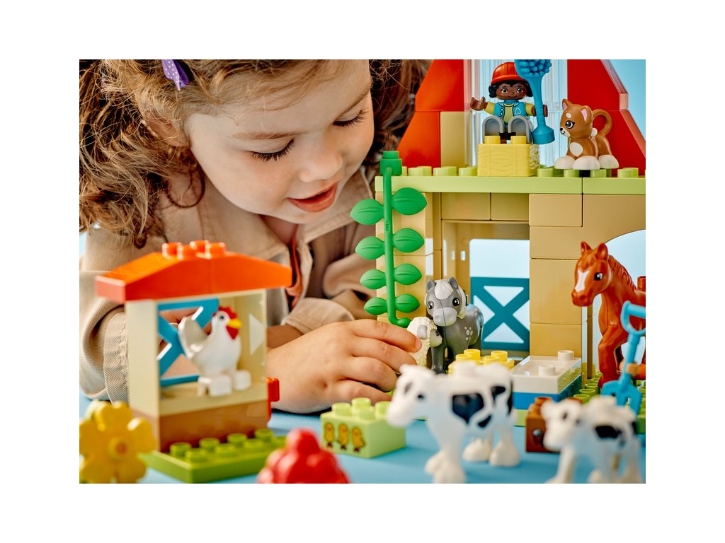 Stavebnice LEGO® DUPLO® Město Péče o zvířátka na farmě představuje skvělou hračku pro děti od 2 let. Nechybí v ní 2 figurky, 8 zvířátek z farmy a farmářský domek.