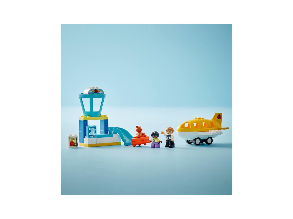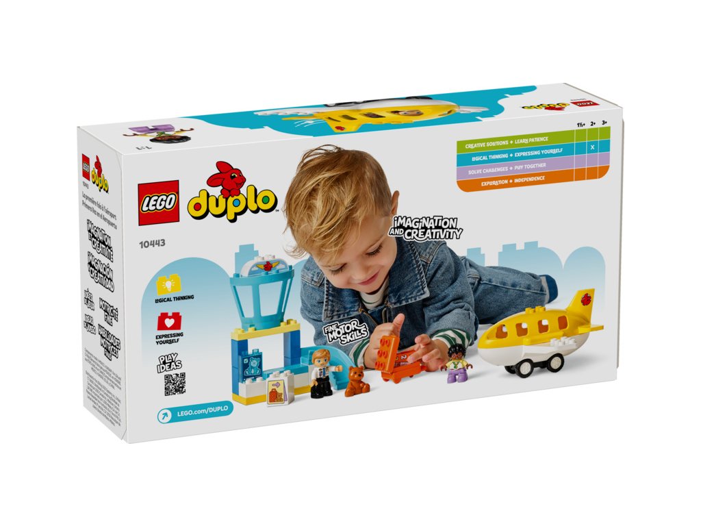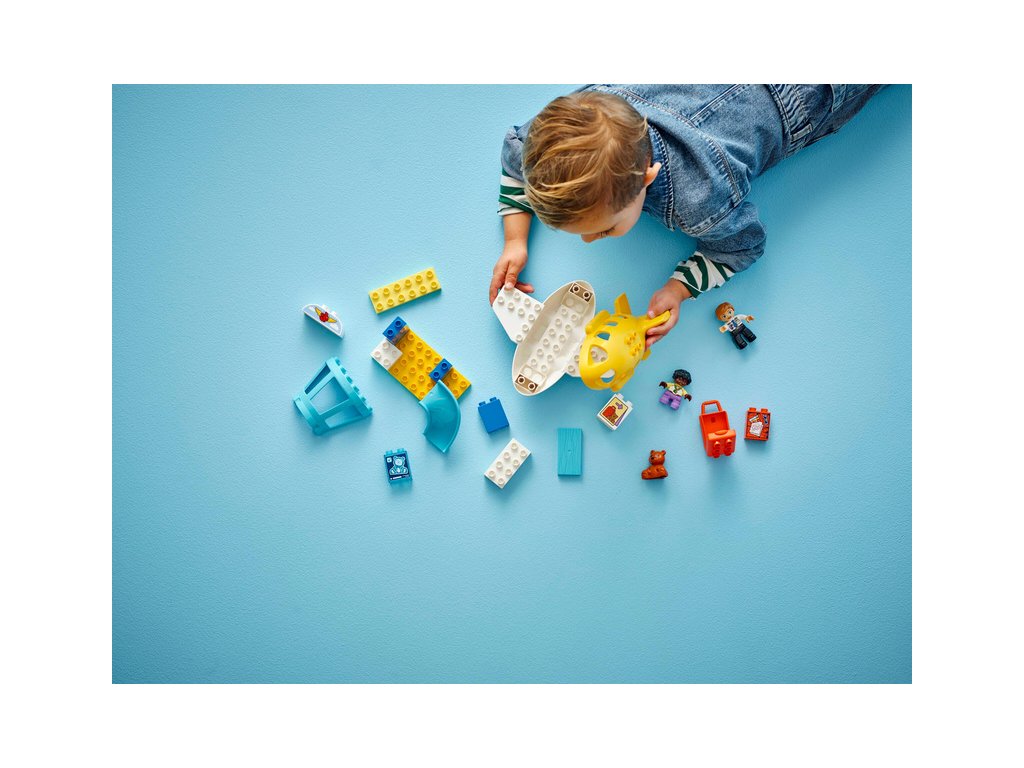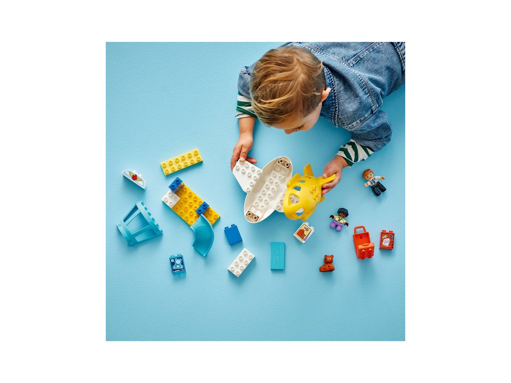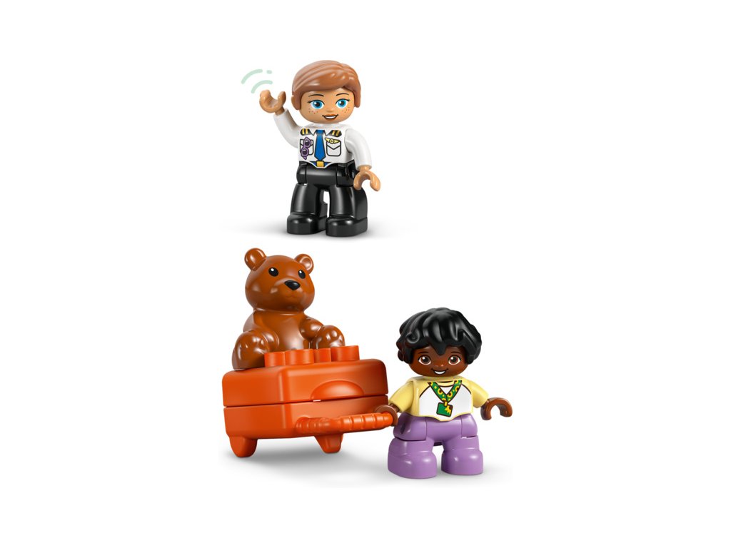 Tato hračka pro malé děti je plná vzdělávacích aktivit. Součástí je kolo emocí, které umožní celé rodině diskutovat o pocitech z cesty na rušné letiště nebo z cestování letadlem. Děti procvičí své jemné motorické schopnosti během balení otevíracího kufru a usazování figurek do letadla. Model navíc podporuje logické myšlení a inspiruje děti k tomu, aby zapojily kreativitu během cesty a staly se hrdiny vlastního dobrodružství LEGO DUPLO. Obsahuje 23 dílků.