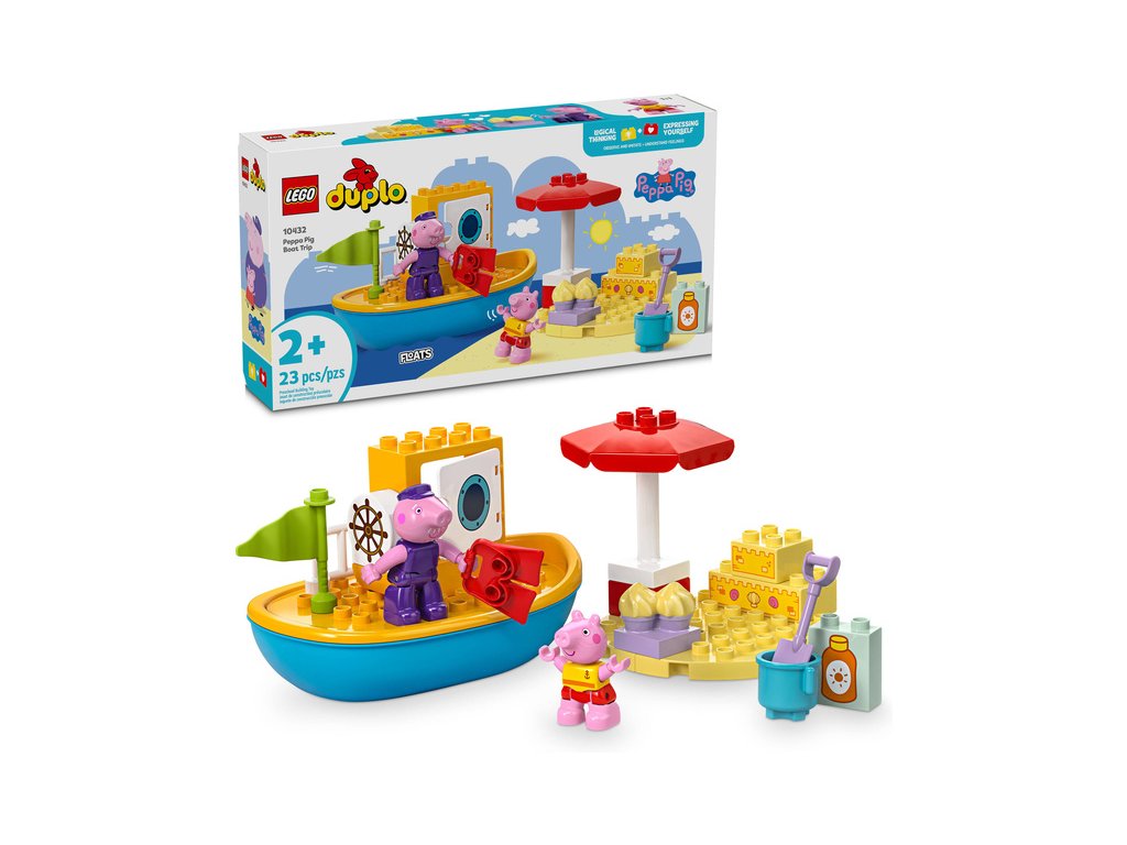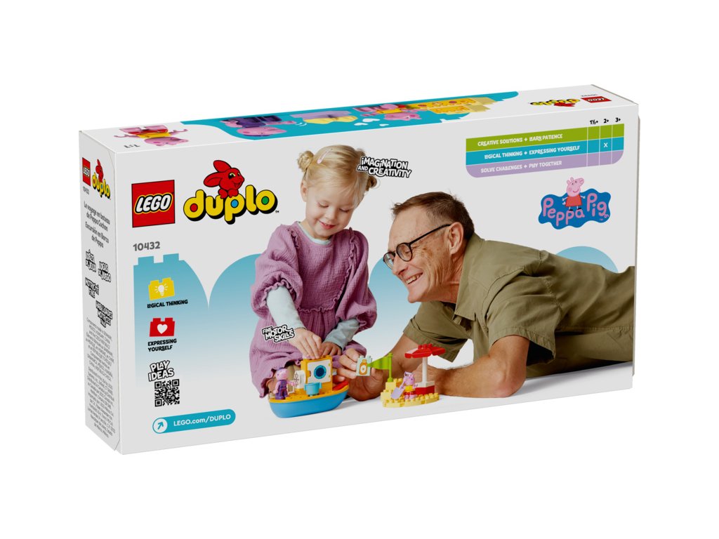 Nastupovat na palubu modelu LEGO® DUPLO® (10432) Prasátko Peppa a výlet na loďce! Děti od 2 let se s touto stavebnicí mohou těšit na hodiny zábavného učení a přidají se k figurkám dědečka a prasátka Peppy, kteří se chystají na pláž s loďkou.