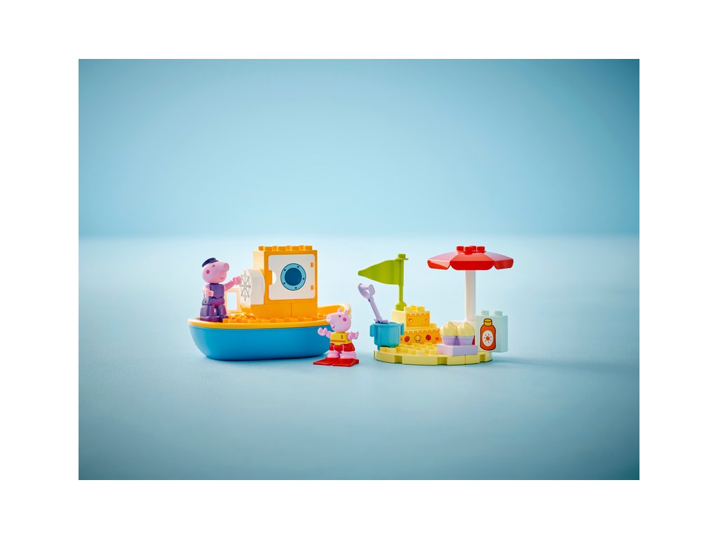 Fantastická stavebnice s pláží a modelem loďky – Děti od 2 let se se stavebnicí LEGO® DUPLO® Prasátko Peppa a výlet na loďce vydají na dobrodružství na pláži.