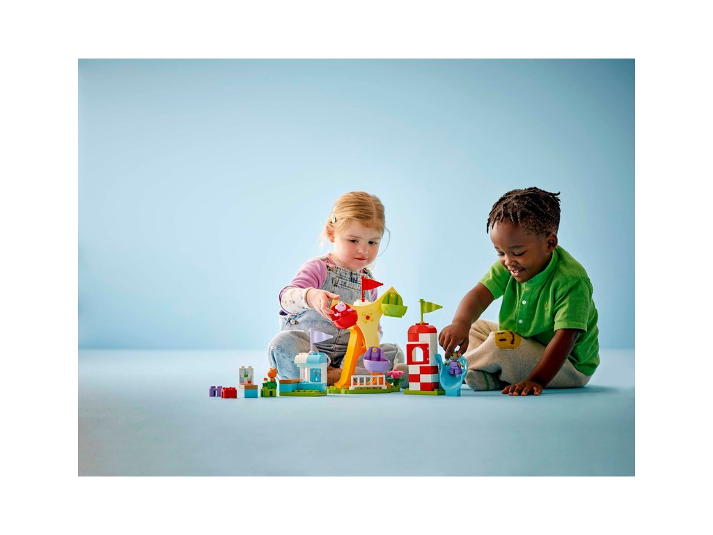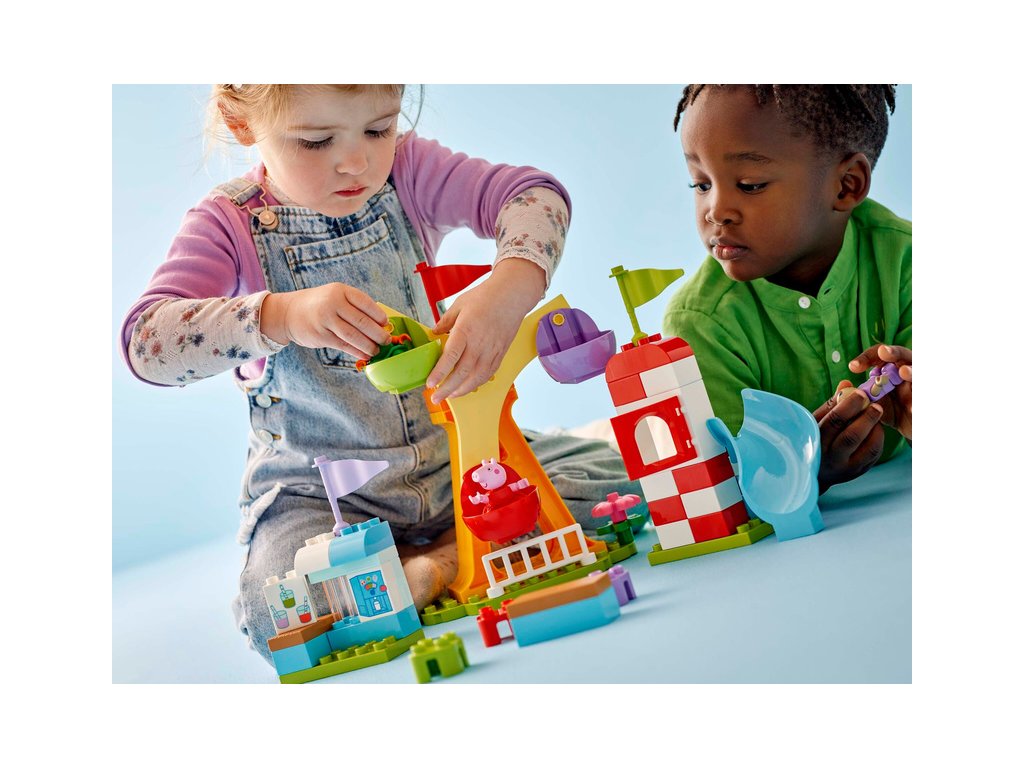 - Stavebnice zábavního parku pro batolata – Se stavebnicí LEGO® DUPLO® Prasátko Peppa Zábavní park se malé děti budou učit hrou a užijí si zábavné okamžiky na karnevalu s postavami ze svého oblíbeného seriálu