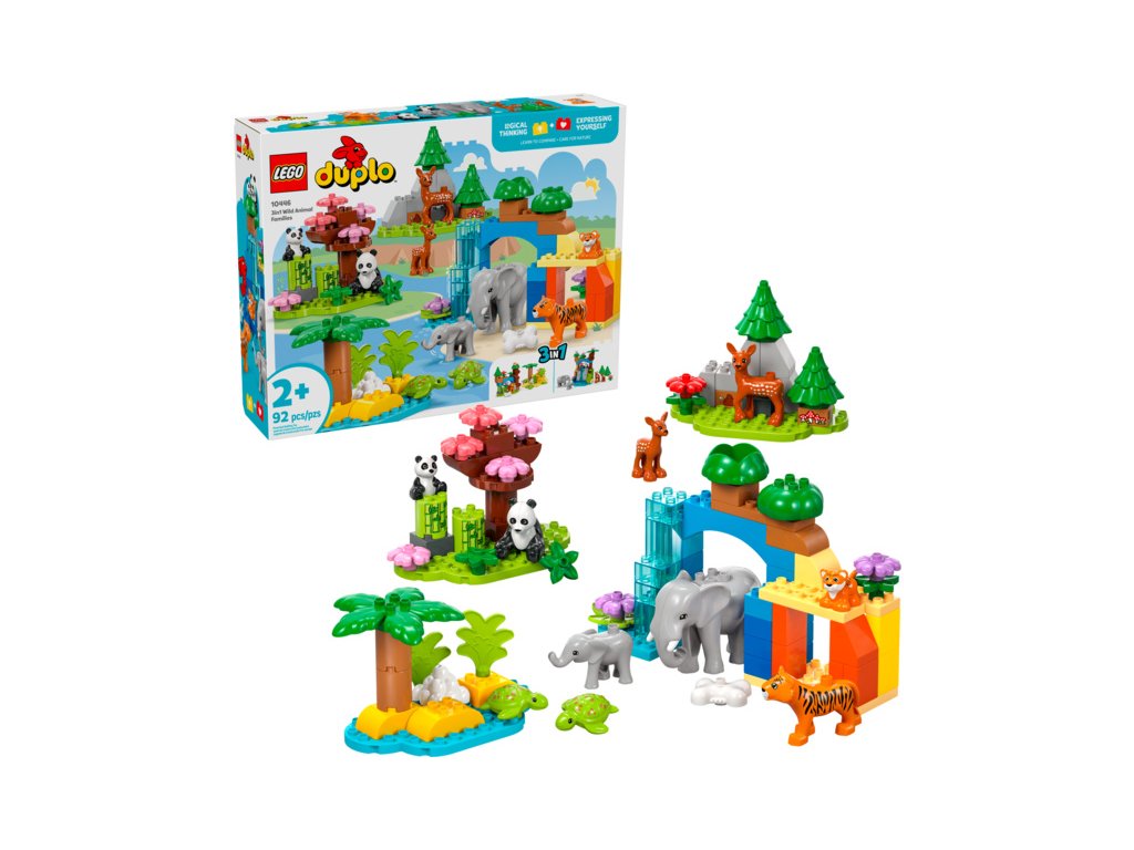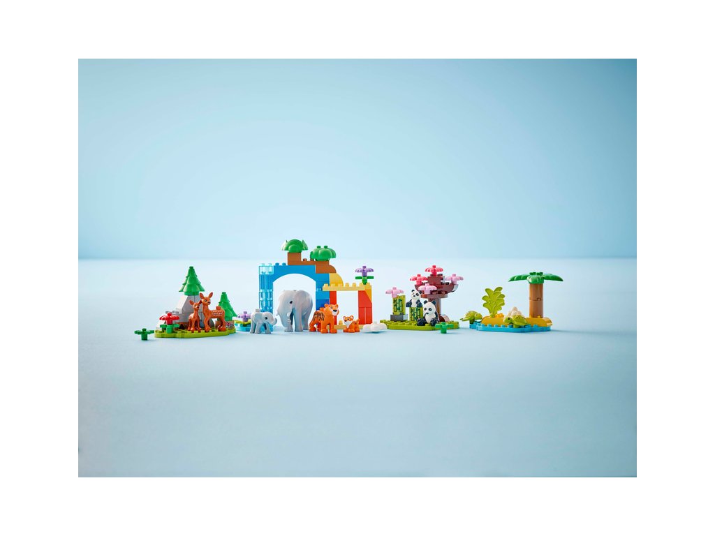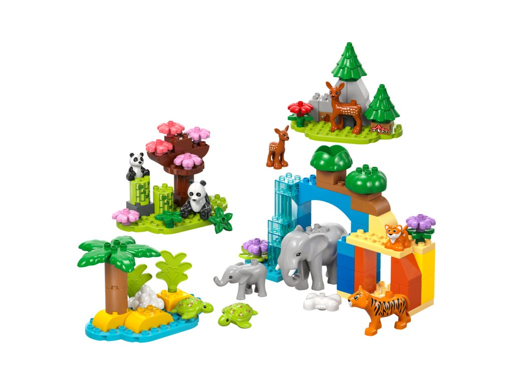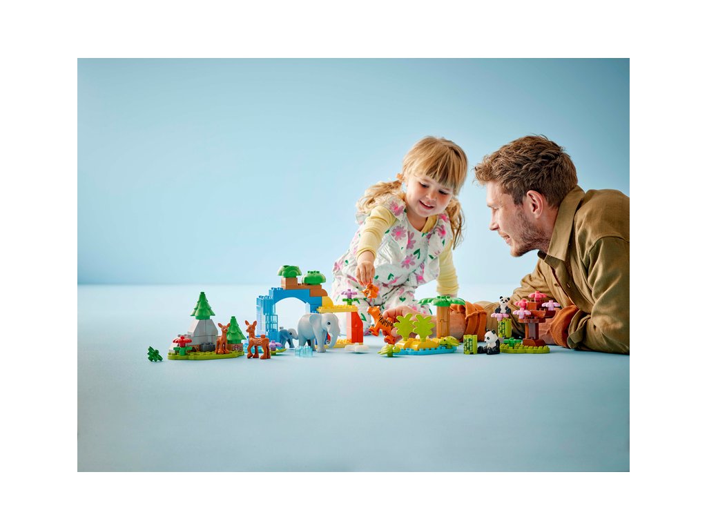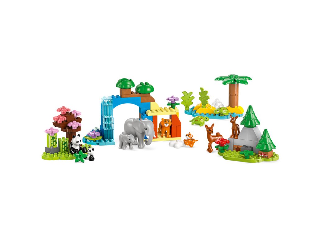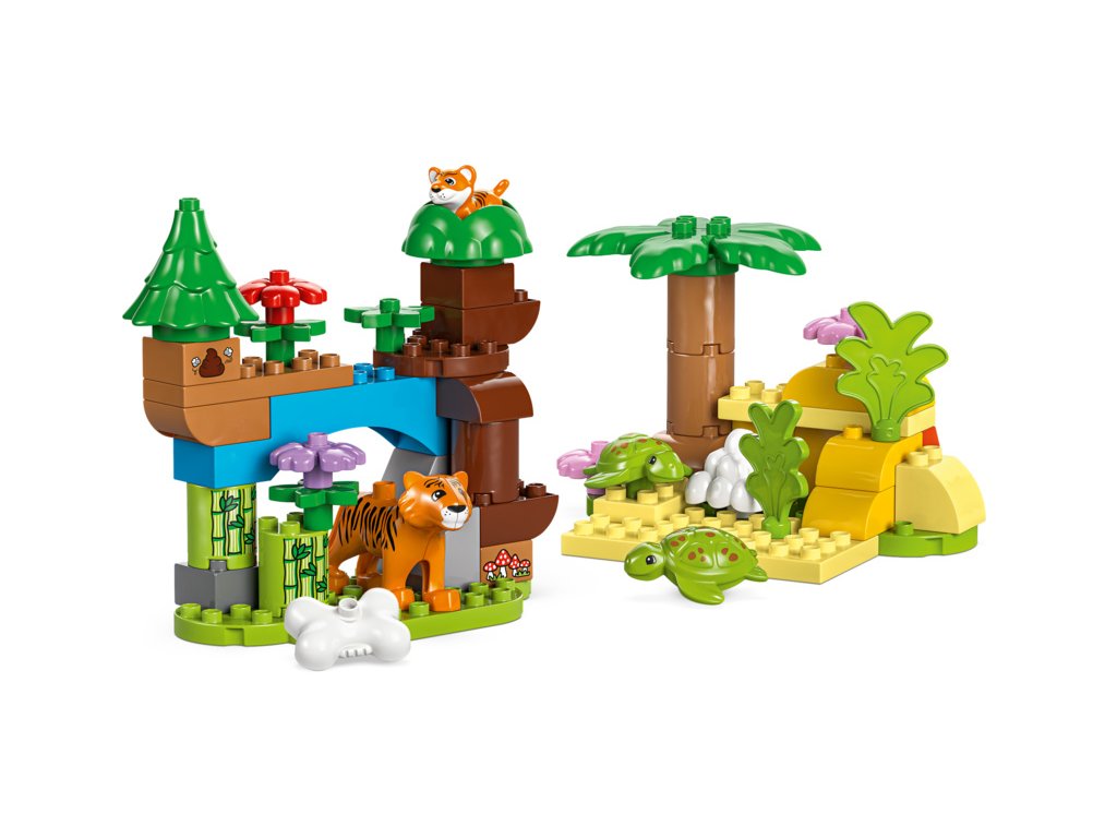- Nápaditá hračka s 10 divokými zvířaty LEGO® DUPLO® pro kreativní vytváření příběhů – Součástí jsou figurky tygra, slona, jelena a pandy, které mají mláďata, a 2figurky želv