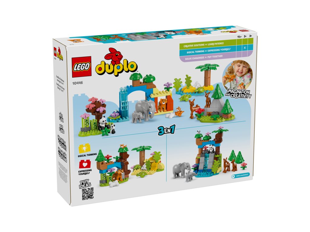 Hledáte dárek pro malé milovníky zvířat? Děti se se stavebnicí Rodinky divokých zvířat 3 v 1 (10446) vydají na dobrodružnou cestu po celém světě. Tato naučná hračka je plná vzdělávacích prvků a obsahuje 10 figurek zvířátek LEGO® DUPLO®.