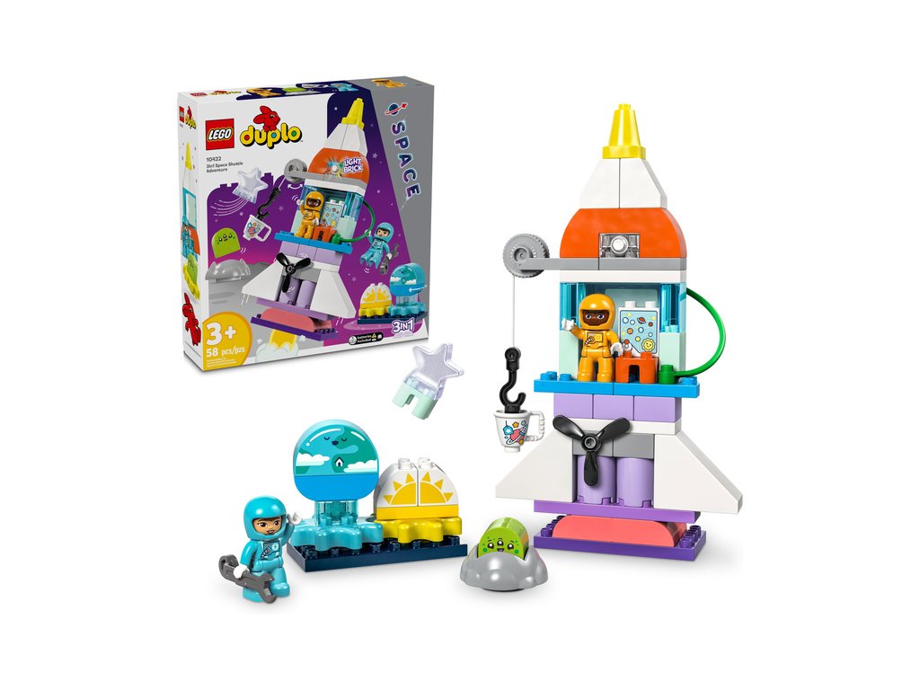 - Přestavitelný model raketoplánu – Potěšte malé astronauty od 3 let stavebnicí LEGO® DUPLO® Vesmírné dobrodružství s raketoplánem 3 v 1