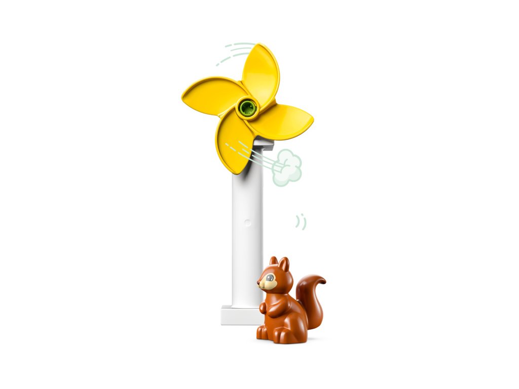 Stavebnice Větrná turbína a elektromobil od LEGO® DUPLO® Town se malým dětem postará o pořádnou porci zábavy. Kvalitní model obsahuje nabíjecí stanici, elektromobil, hasák a figurky techničky a veverky.
