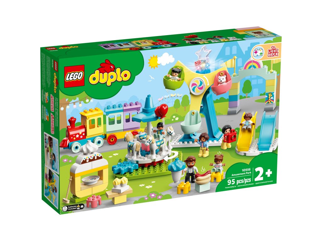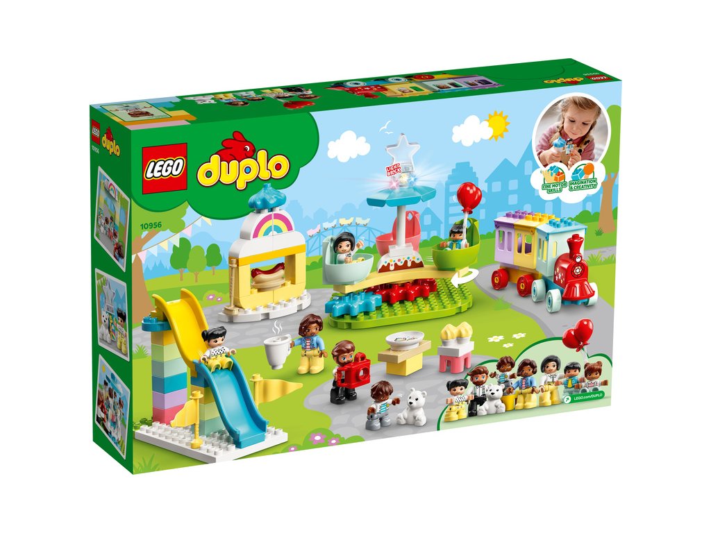 - Stavebnice Zábavní park (10956) od LEGO® DUPLO® přináší spoustu parádních atrakcí a zábavných prvků, které zabaví bystré dětské hlavičky i jejich rodiče.
