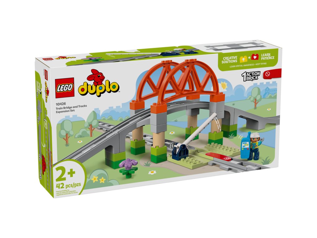 - Stavebnice s kolejemi – S rozšiřující sadou Železniční most a koleje z řady LEGO® DUPLO® děti od 2 let zdokonalí důležité schopnosti