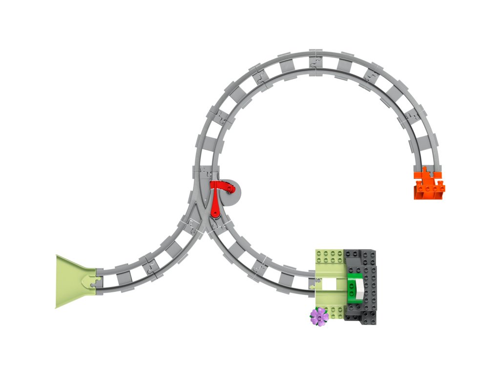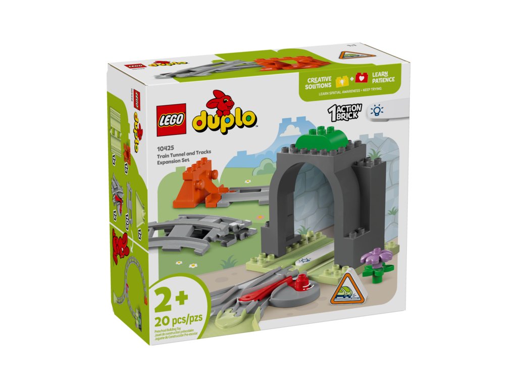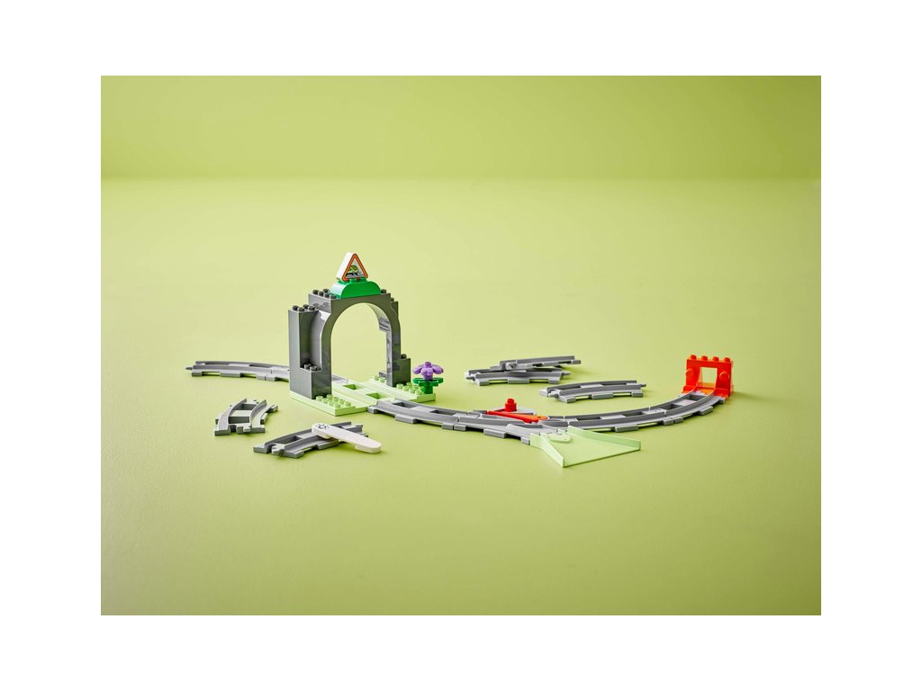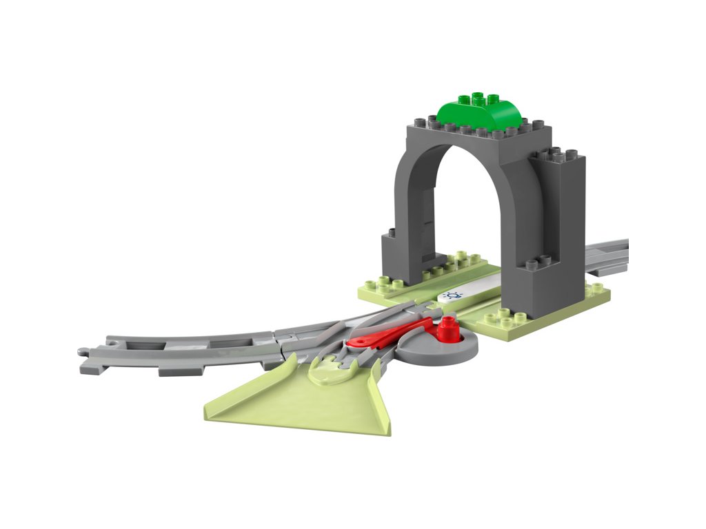 Součástí této kreativní stavebnice je model tunelu, 10 dílků kolejnice, komín a dvojitá výhybka, pomocí které děti mohou změnit směr jízdy vláčku. Akční kostka rozsvítí tmavý tunel, když ji aktivuje interaktivní vláček ze stavebnic 10427 a 10428.