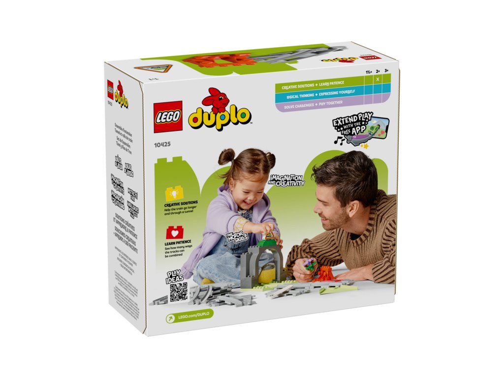 Dopřejte malým dětem ještě více dobrodružství se sadou Železniční tunel a koleje – rozšiřující sada (10425). Malé stavitele od 2 let čeká úchvatná cesta za poznáním díky tunelu a novým kolejnicím, které zkombinují se svými interaktivními stavebnicemi LEGO® DUPLO® Město (10427 a 10428, prodávají se samostatně).