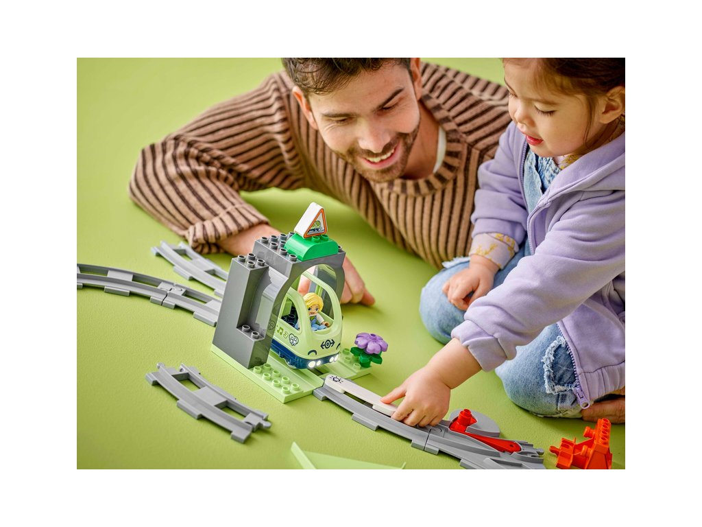- Stavebnice s kolejemi – S rozšiřující sadou Železniční tunel a koleje z řady LEGO® DUPLO® děti od 2 let zdokonalí důležité dovednosti