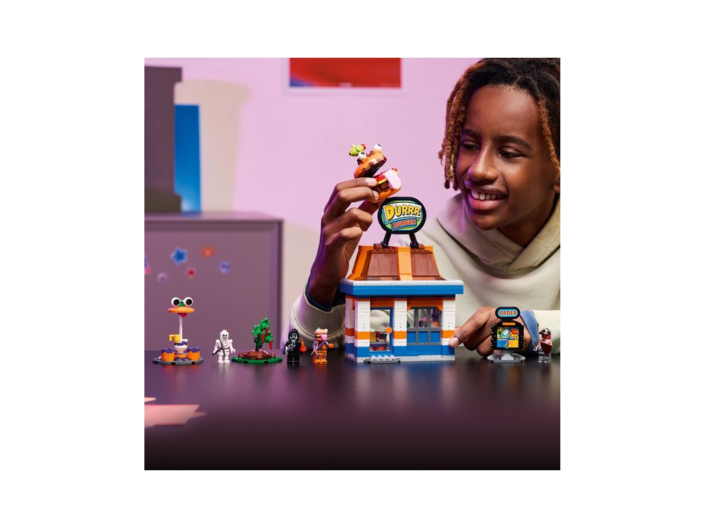 - Model restaurace Durrr Burger – Popusťte uzdu fantazii se stavebnicí LEGO® Fortnite® Restaurace Durrr Burger pro děti od 10 let