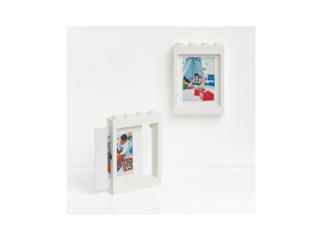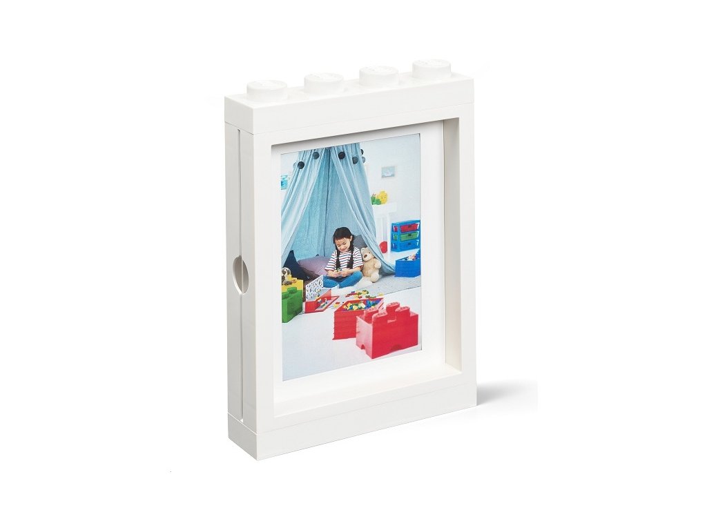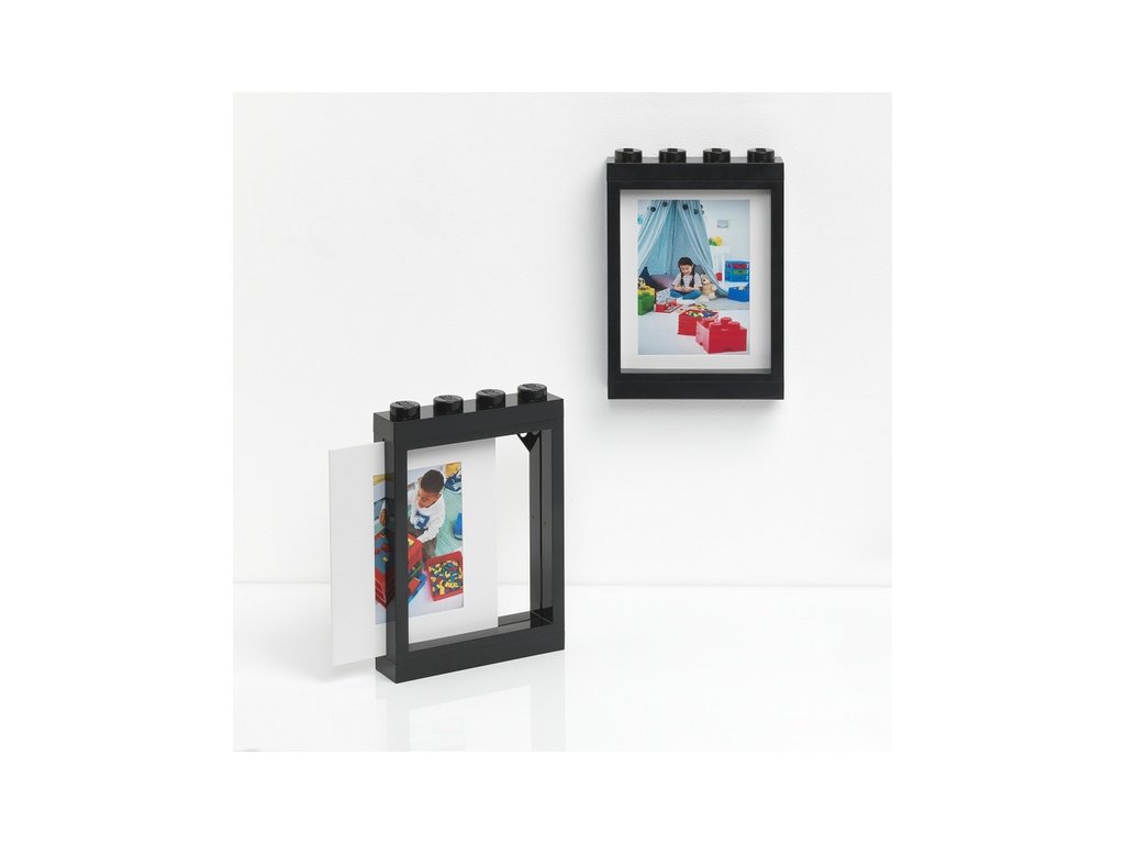Vystavte své oblíbené fotografie stylově v novém fotorámečku LEGO. Rámeček lze pověsit na zeď, nebo volně položit na noční stolek či poličku. Kartonová vsuvka je přizpůsobena na 2 velikosti fotografií: 10x15 cm anebo 12x17 cm. Fotorámečky jsou kompatibilní se skříňkami na minifigurky a lze je skládat na sebe jako klasické LEGO.