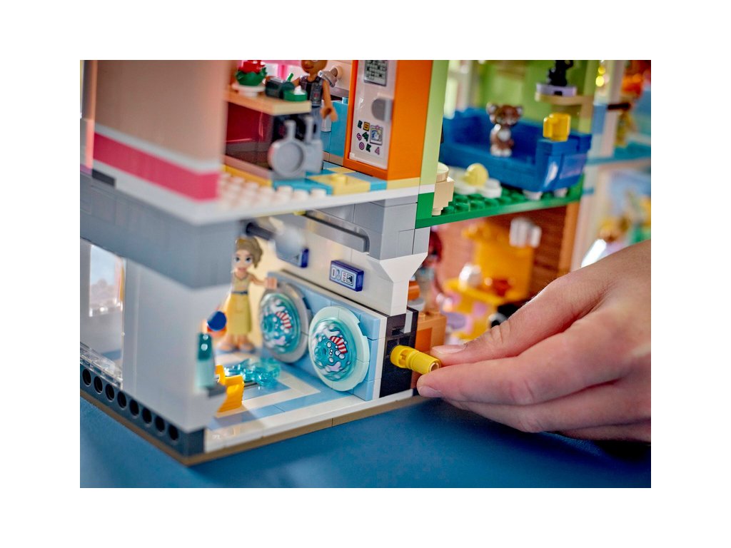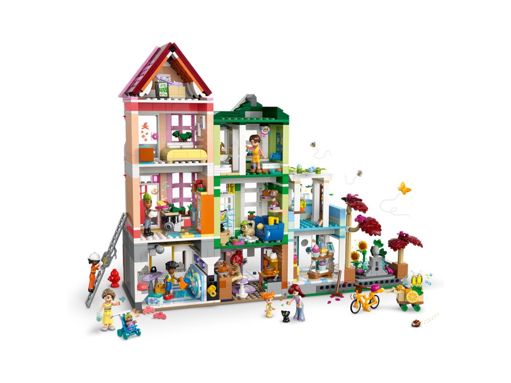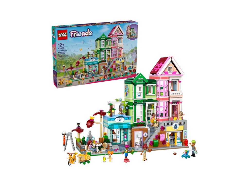 Objevte stavebnici LEGO® Friends (42670) Apartmány a obchody v městečku Heartlake plnou komunitního kouzla. Tato stavebnice představuje skvělý dárek pro děti od 12 let a obsahuje 3 barevné domy z kostek LEGO, pekárnu, keramický ateliér, prádelnu a spoustu dalšího. Čeká na vás spousta zábavných detailů a příběhů a 9 postav, včetně 7 minipanenek a 3 figurek koček.