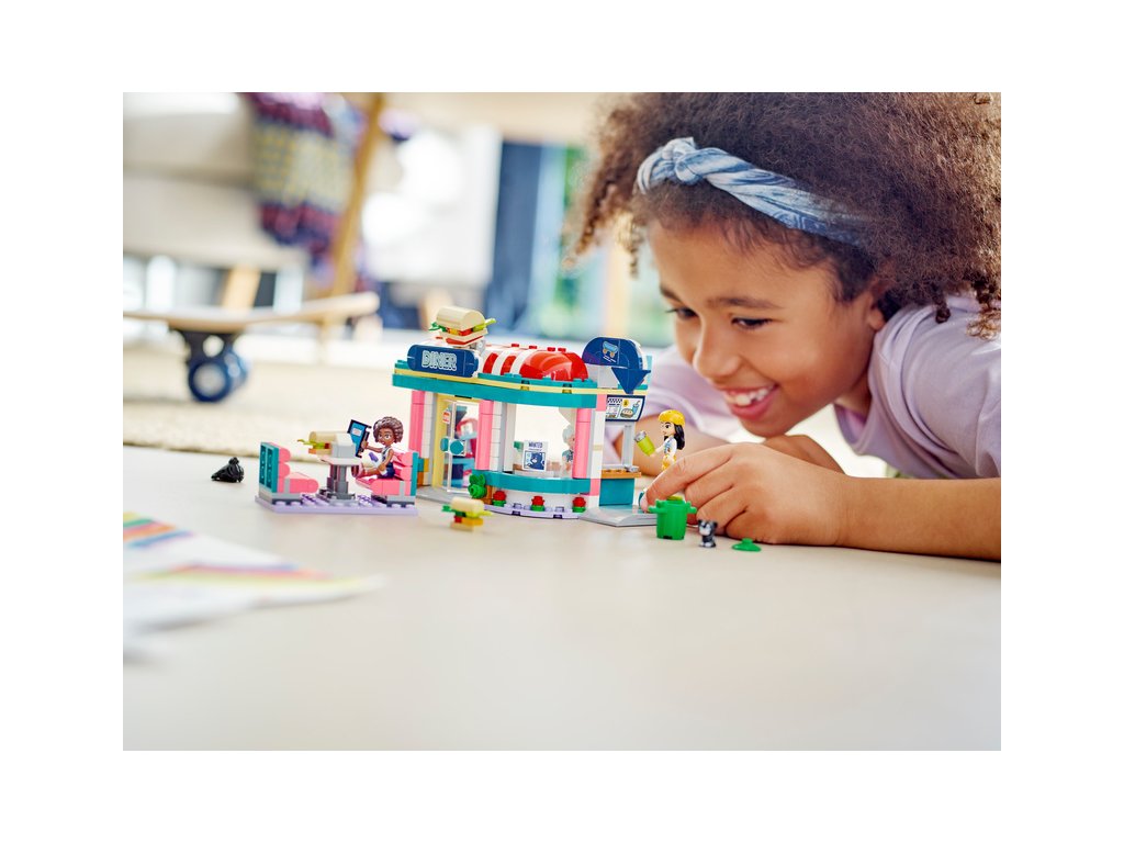- Obsahuje 3 minipanenky – Tato stavebnice na motivy městečka Heartlake je dodávána s postavami LEGO® Friends Liann, Aliyou a Charli a se spoustou doplňků inspirovaných restaurací