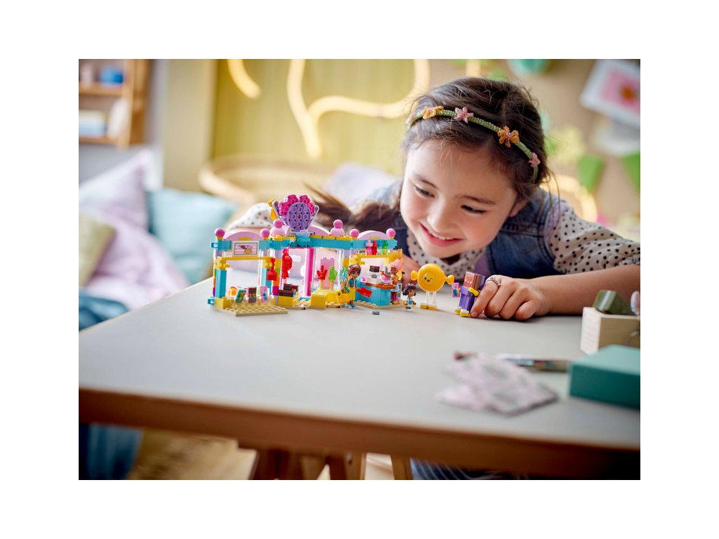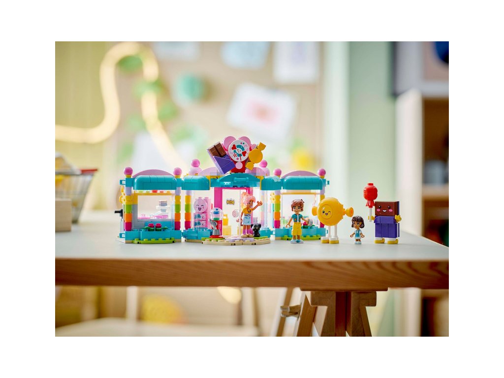 LEGO® Cukrárna v městečku Heartlake pro holky a kluky od 6 let obsahuje 2 minipanenky, mikropanenku, figurku kočky a doplňky pro hraní na postavy.
