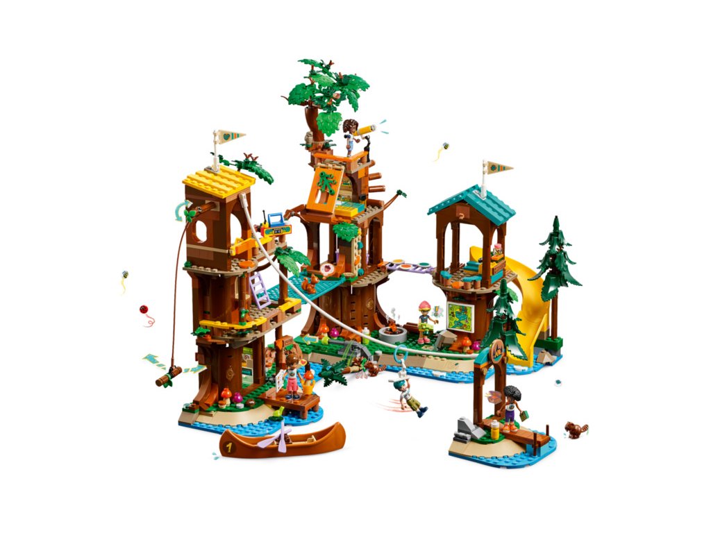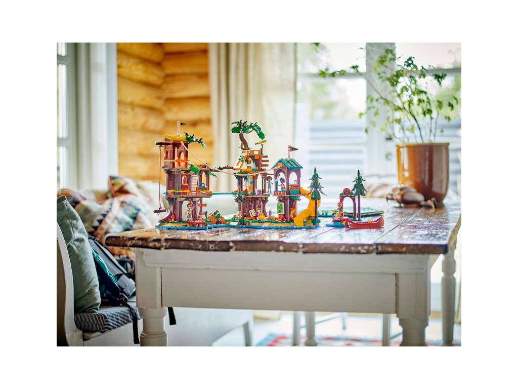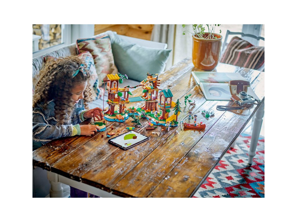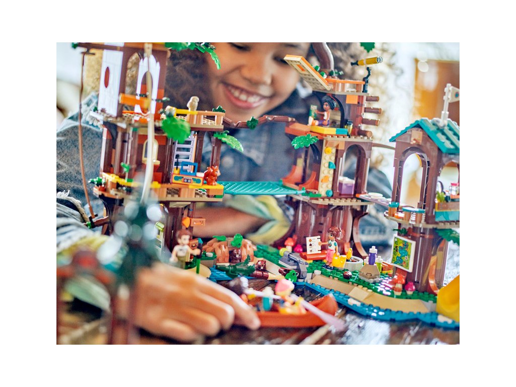 - Stavebnice tábora pro děti – Sada LEGO® Friends Dobrodružný tábor – dům na stromě pro děti i holky od 8 let obsahuje 5 minipanenek, spoustu figurek zvířat, kanoi a sportovní doplňky