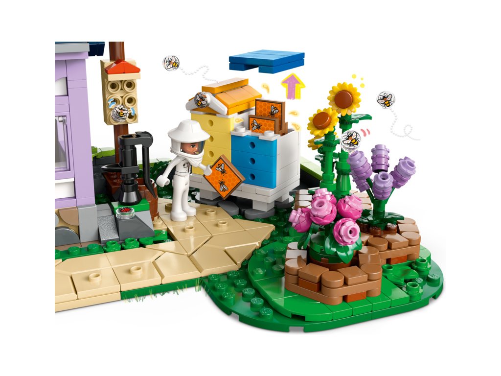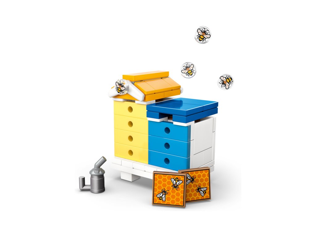 - Včelařská stavebnice pro děti a teenagery – Dům včelařů a květinová zahrada pro děti od 12 let obsahuje 4 minipanenky, 2 figurky zvířátek LEGO® a spoustu doplňků