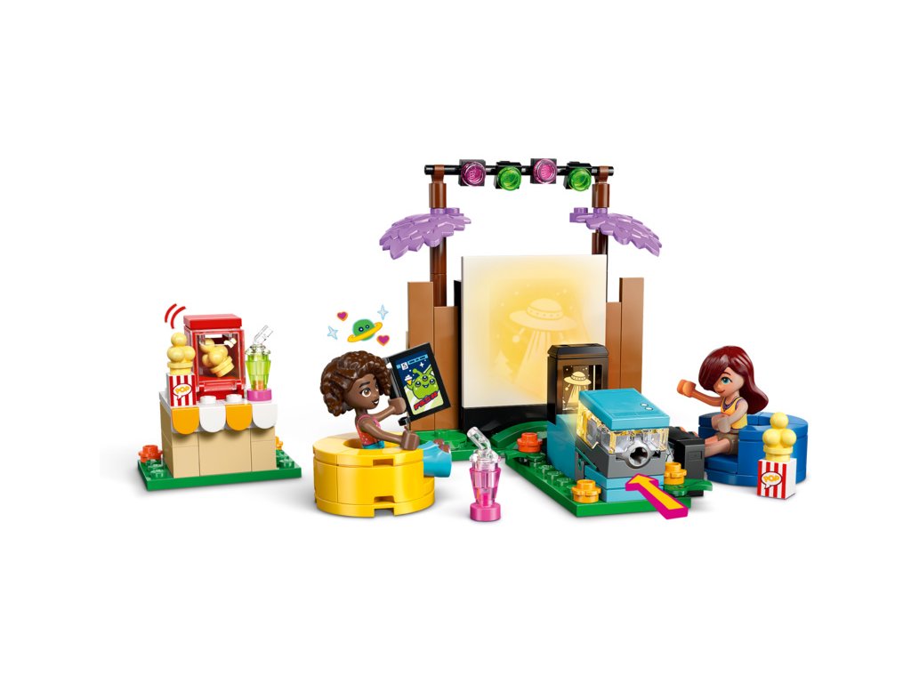 - 2 postavy LEGO® Friends – Součástí této hračky jsou minipanenky Paisley a Aliyi, které děti inspirují k vymýšlení příběhů, ve kterých kamarádky sledují filmy na Paisleyině zahradě