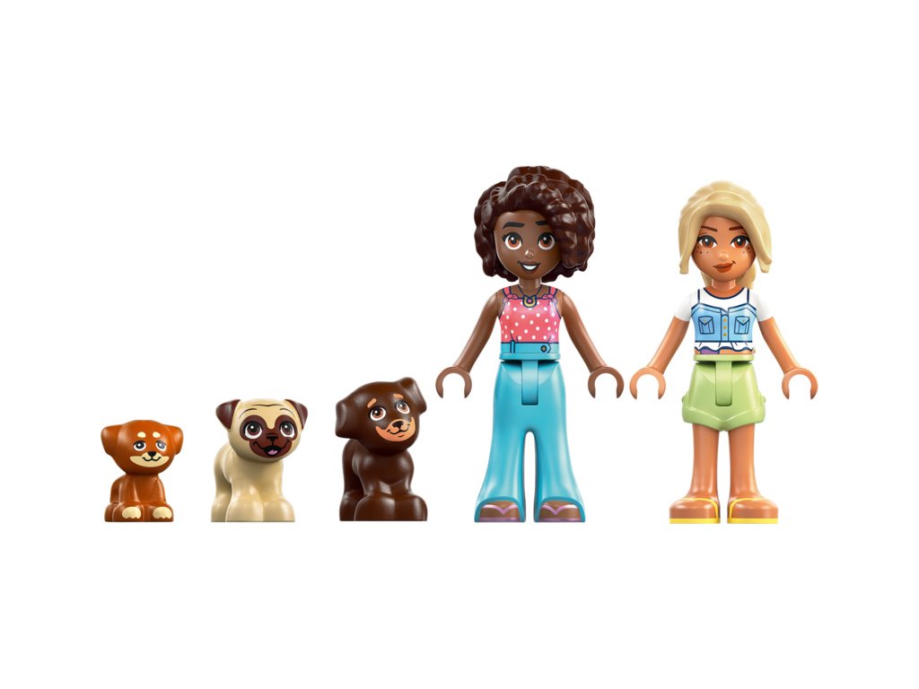 - 2 minipanenky LEGO® Friends a 3 figurky psů – Součástí této stavebnice jsou minipanenky Aliyi a Sary a štěňátka Aira, Dango a Maple, se kterými si děti zahrají na různé situace a vymyslí si příběhy o přátelství