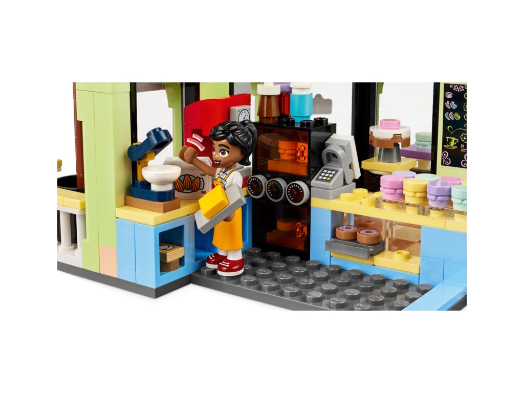 Tato vzdělávací hračka pro rozvoj sociálních schopností vypráví příběh o Paisley a Ollym, kteří navštíví svou oblíbenou kavárnu v městečku Heartlake. Beatriz třídí makronky a peče dorty v kuchyni, kde najdete troubu a kávovar. Poté kamarádům pomůže vybrat si dobroty, na kterých si pochutnají venku, a zabalí makronky do krabice připravené na rozvoz na skútru.
