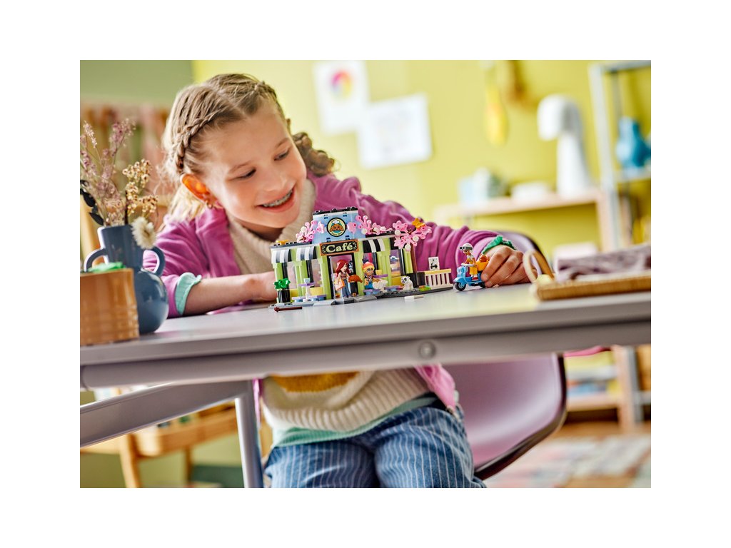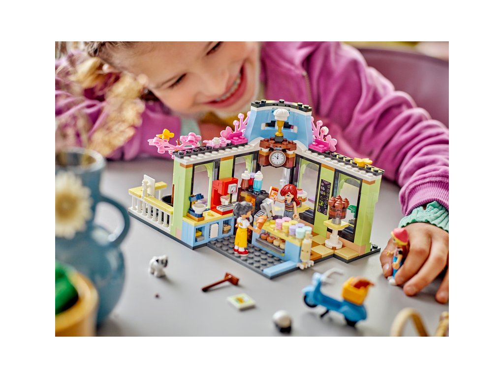 - Příběhy z kavárny pro děti – Ve stavebnici Kavárna v městečku Heartlake pro kluky i holky od 6 let najdete 3 minipanenky a figurku psa, doplňky v podobě jídla a skútr pro nápadité hraní