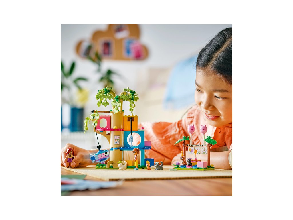 - Vymýšlejte si příběhy s postavami LEGO® Friends – Tato stavebnice obsahuje minipanenky Lea a Paisley, 5 figurek koček, sestavitelný kočičí domek na stromě a sestavitelný narozeninový dort