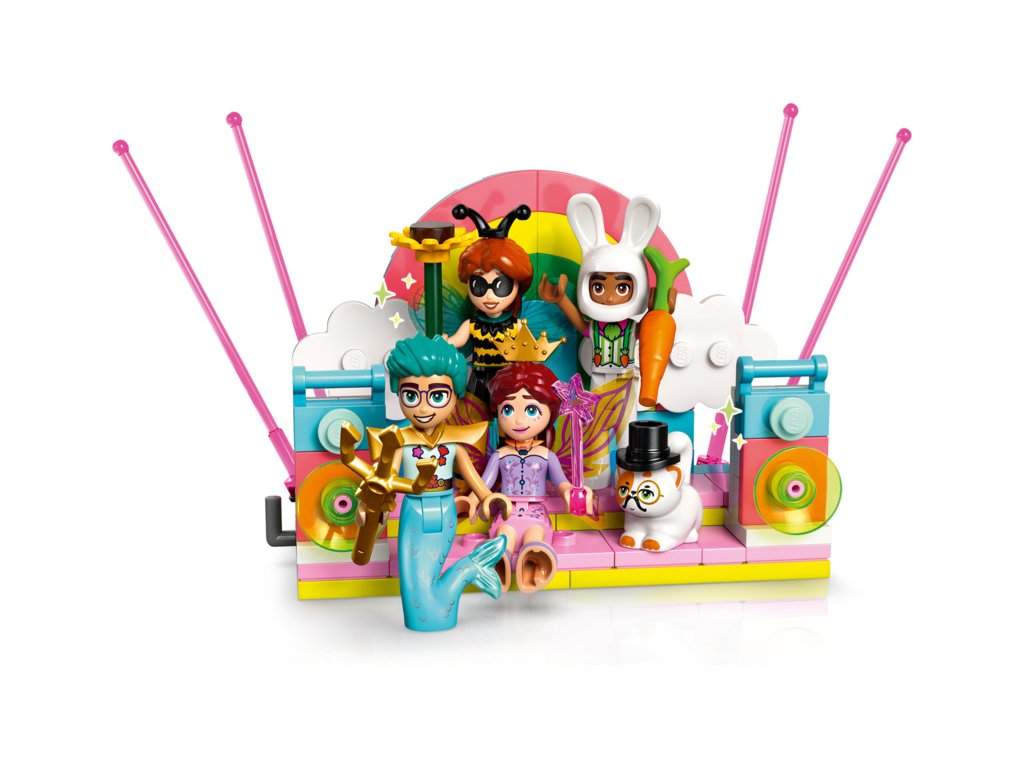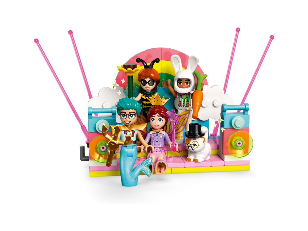 - Doplňky na kostýmovou párty – Tato stavebnice LEGO® obsahuje spoustu doplňků, které podnítí k hraní rolí, včetně stroje na ledovou tříšť, dortů, nápojů, balónků, klobouků, trojzubce mořského muže, hůlky pro vílu a spoustu dalších