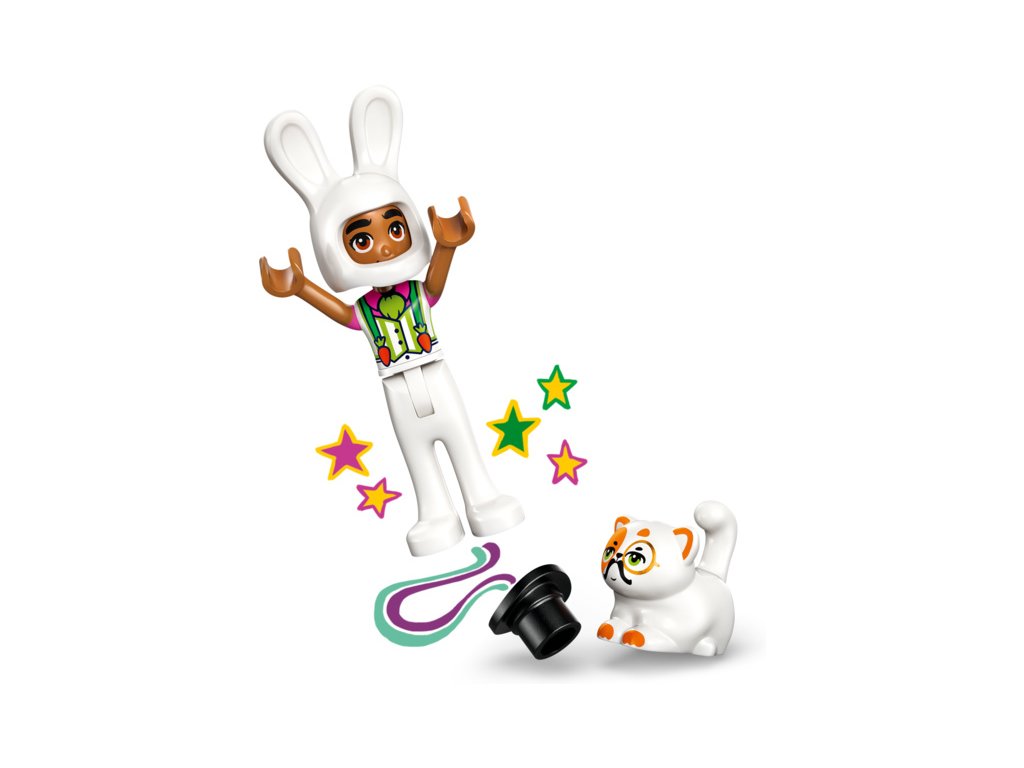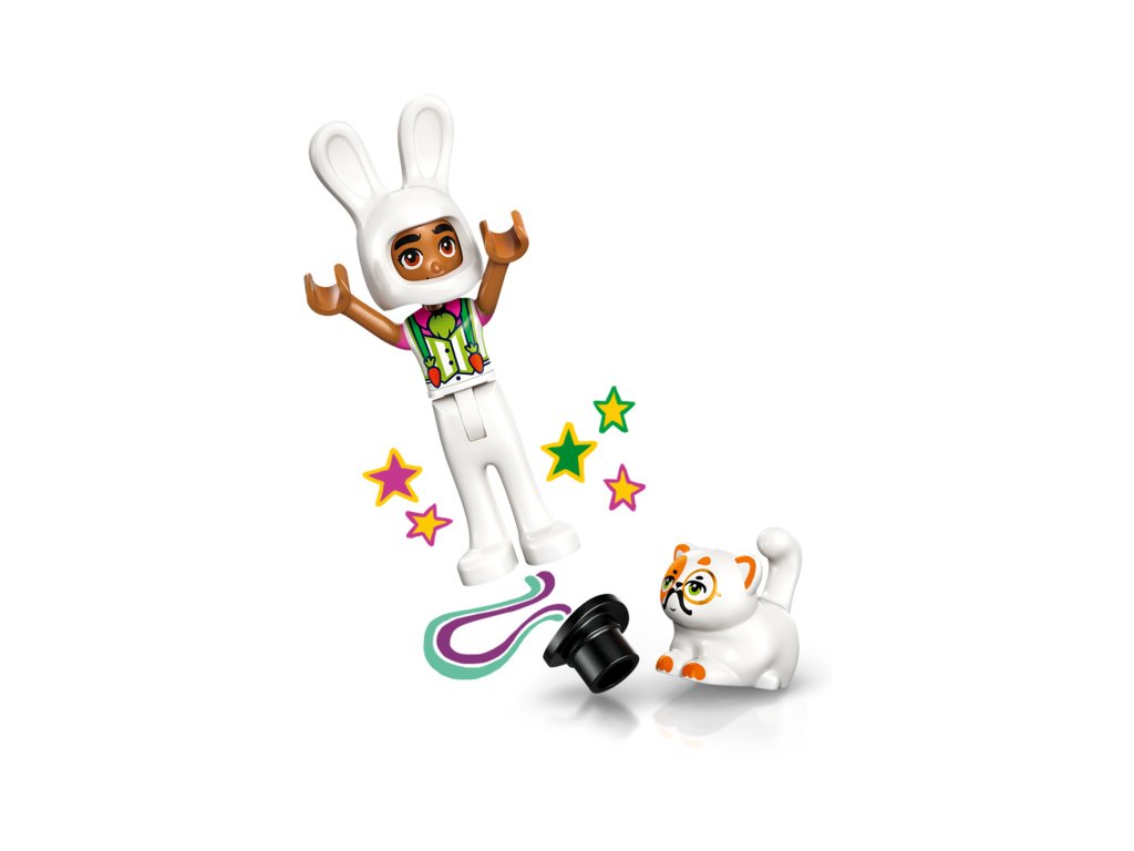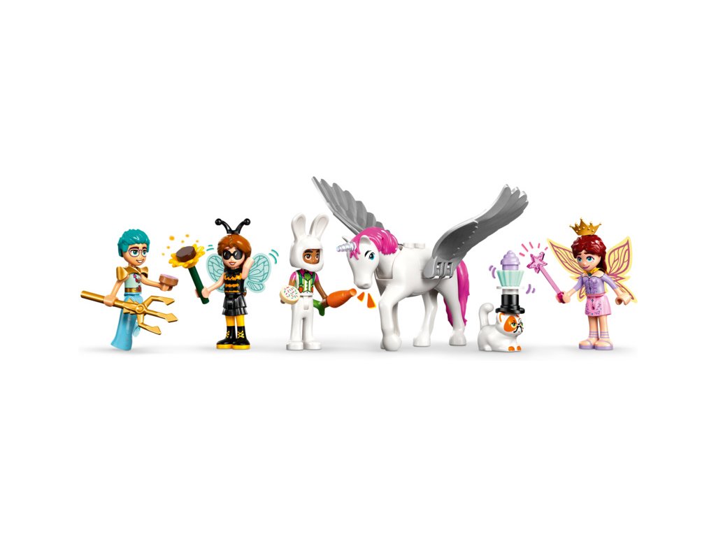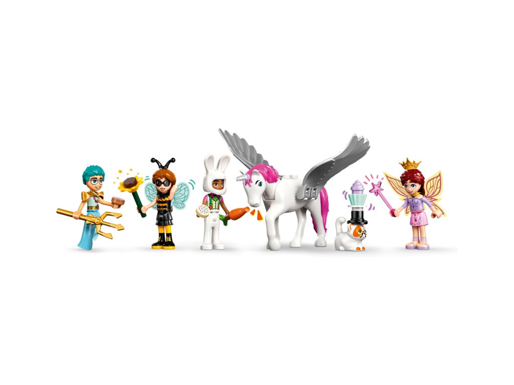 - 4 minipanenky a 2 figurky zvířátek LEGO® – Uspořádejte párty s Autumn, Ollym, Leem, Paisley a jejich zvířátky, kteří se převléknou za čmeláka, mořského muže, kouzelníka, zajíčka, vílu a jednorožce