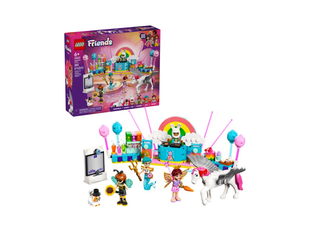 Stavebnice LEGO® Friends (42661) Kostýmová párty s jednorožcem a vílou pro holky a kluky od 6 let obsahuje 4 minipanenky LEGO Friends, figurku kočky a figurku koně a nechybí spousta roztomilých párty doplňků, které inspirují k zábavnému hraní.