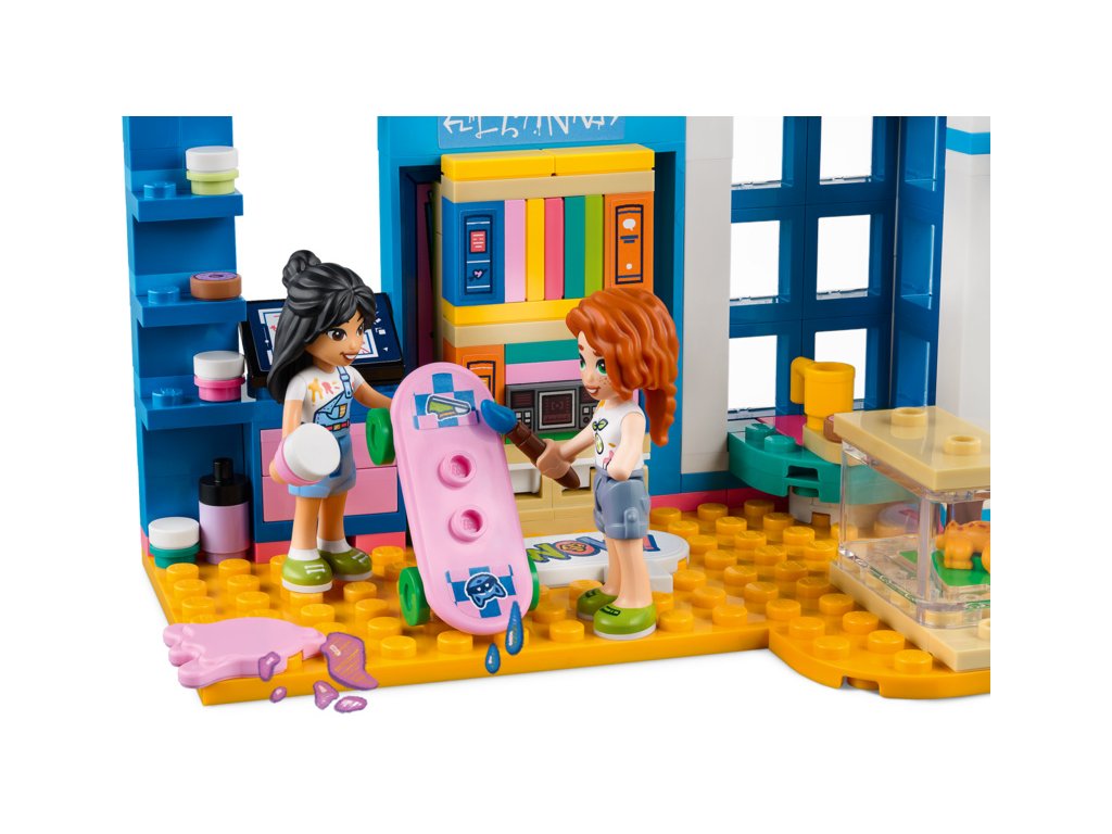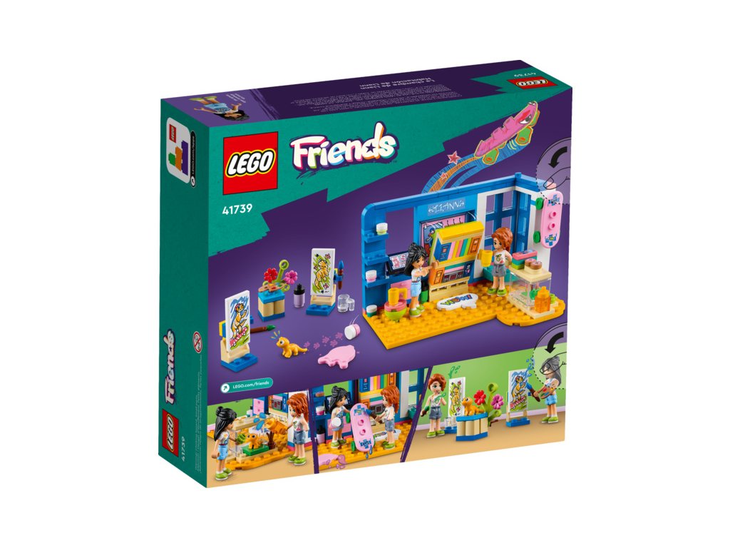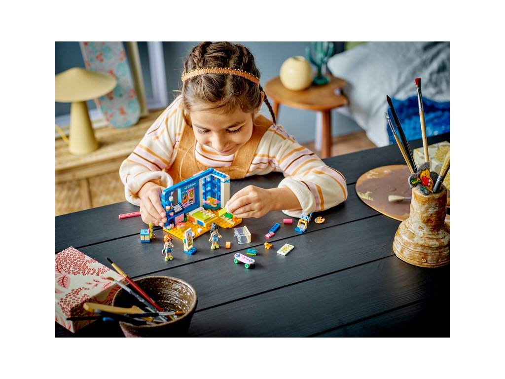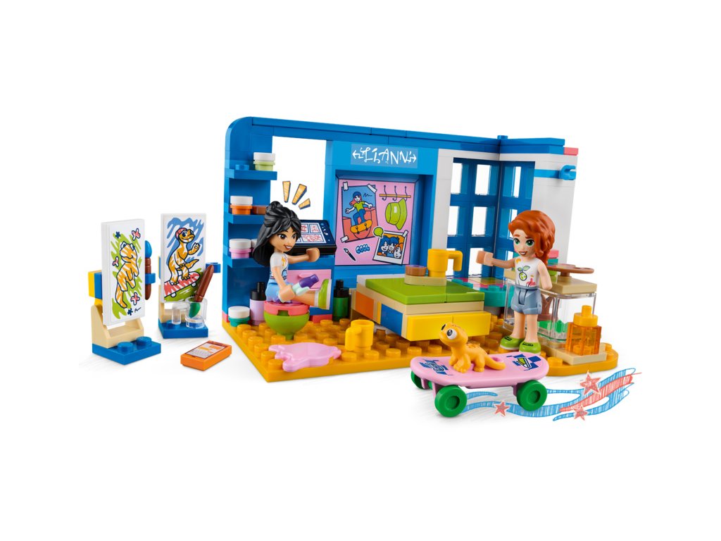 Umělecky založené děti od 6 let budou mít díky stavebnici Liannin pokoj (41739) od LEGO® Friends stále co objevovat. Těšit se mohou na umělecký stůl, výklenek s oknem a skrytou postel. Přátelství mezi energickou Liann a pohodářkou Autumn jim nabídne spoustu podnětů ke zkoumání. Děti mohou mimo jiné namalovat Liannina gekona jménem Popcorn. Součástí je také spousta doplňků, které inspirují ke kreativnímu hraní s uměleckými materiály, včetně tub s barvou, palet a stojanů. Nechybí ani koblihy, hrníčky, komiksy, skateboard, mobilní telefon, pero a terárium pro gekona Popcorna.