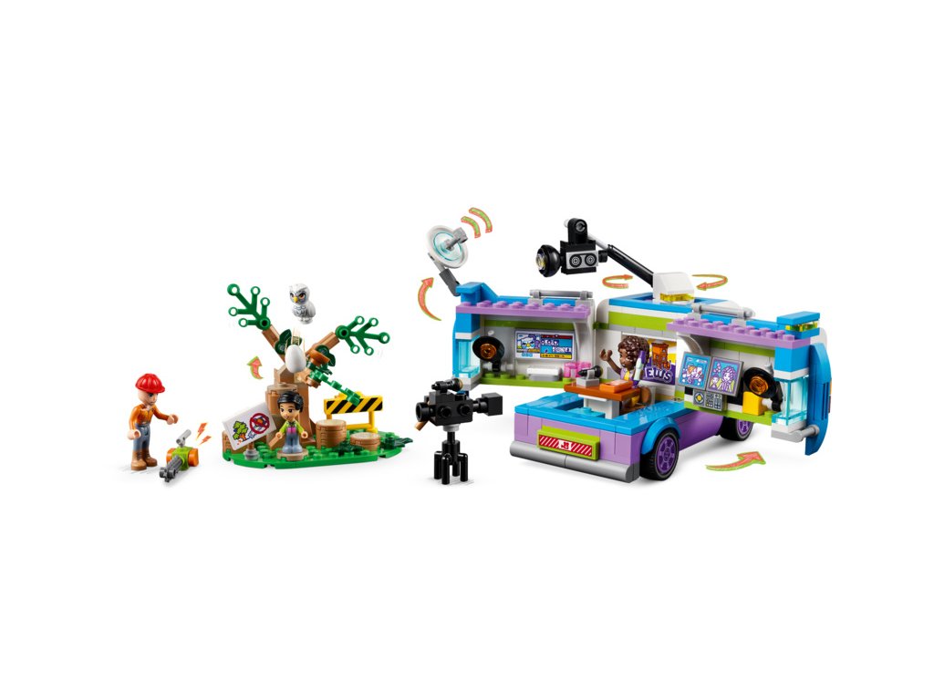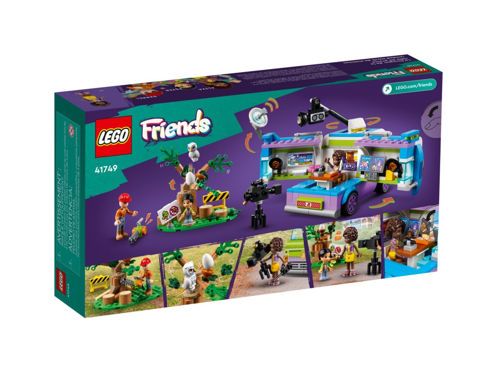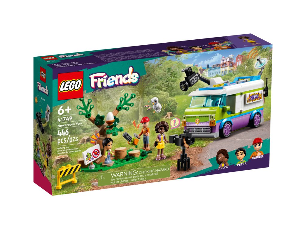 Stavebnice LEGO® Friends Novinářská dodávka (41749) přinese spoustu inspirace dětem od 6 let, které milují hraní a divoká zvířata. Pilná Aliya se zavázala pro komunitní centrum informovat o nejnovějších událostech. V dodávce je vše, co Aliya potřebuje k vytváření a sdílení zpráv, včetně obrazovek, světel, kamer, mikrofonů a zápisníku s tužkou. Děti mohou vyprávět příběh o dřevorubci, který přijíždí pokácet strom. Po natočení této události mohou děti přesunout Aliyu do řídicí místnosti v dodávce, kde zpravodajský příspěvek sestříhá a odvysílá. Součástí stavebnice jsou 2 minipanenky, 1 mikropanenka a spousta doplňků.