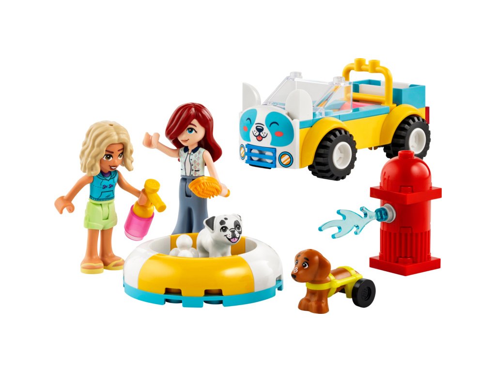 - Sestavitelné doplňky pro péči o zvířata – Děti si poskládají model vozidla s koly a bazének a nechybí doplňky, jako jsou kartáče, šampon a požární hydrant