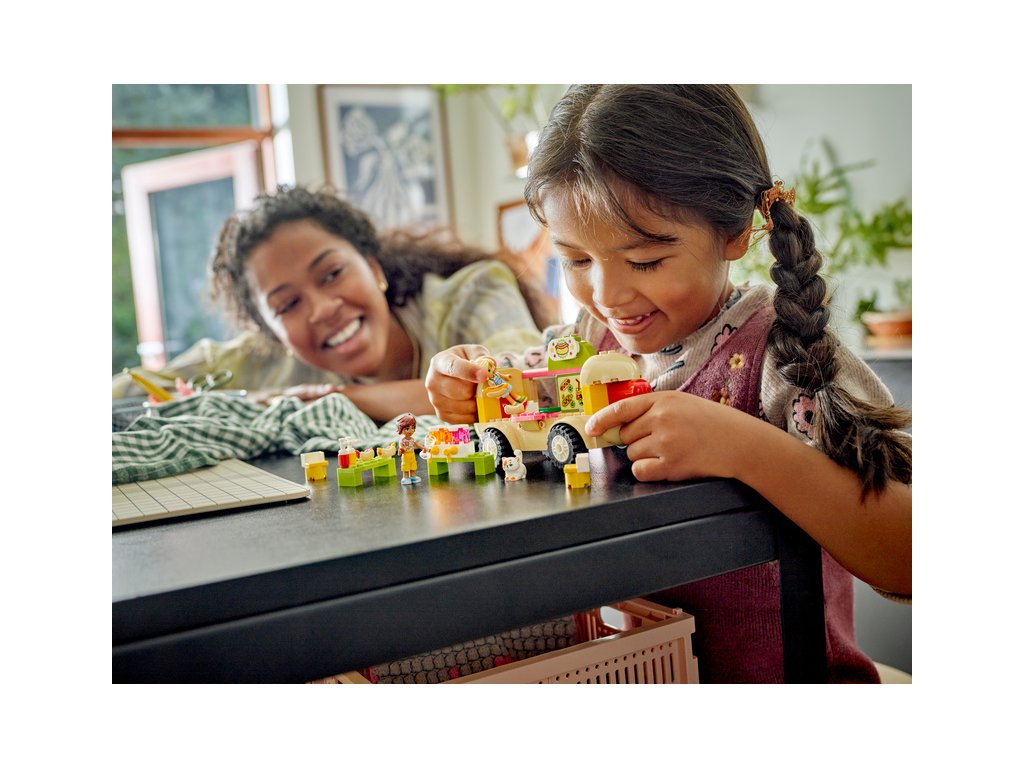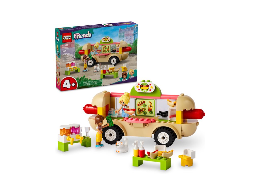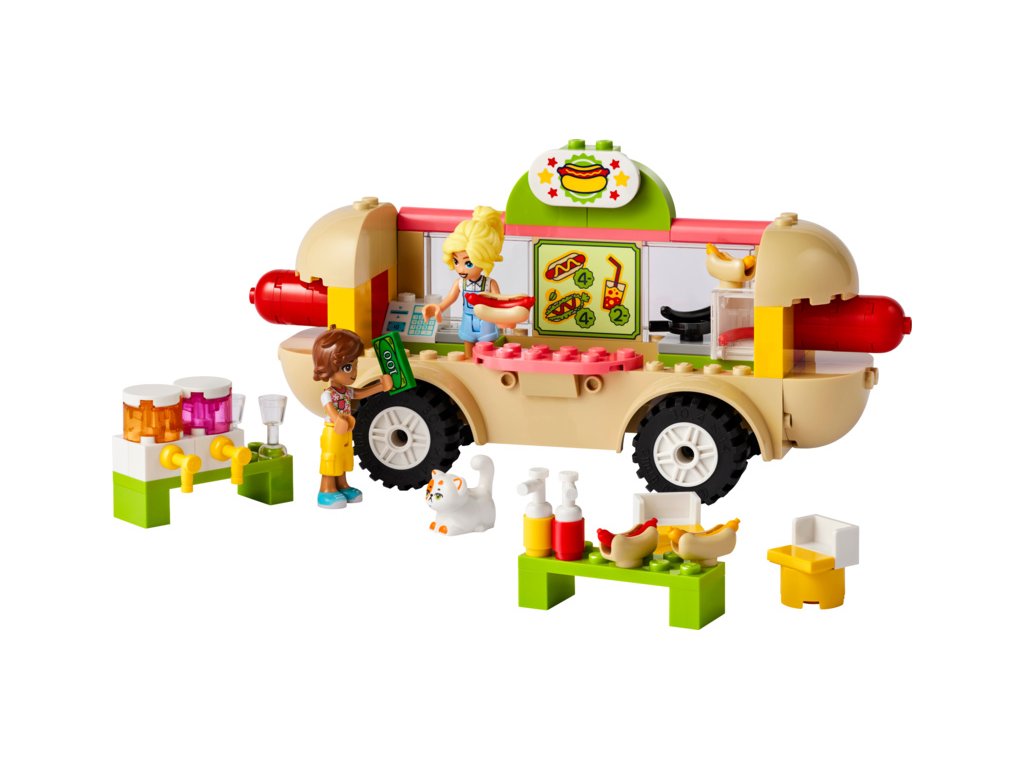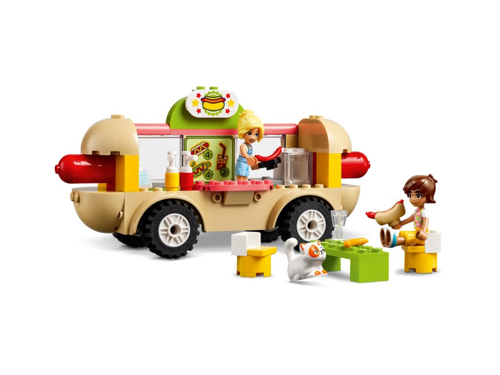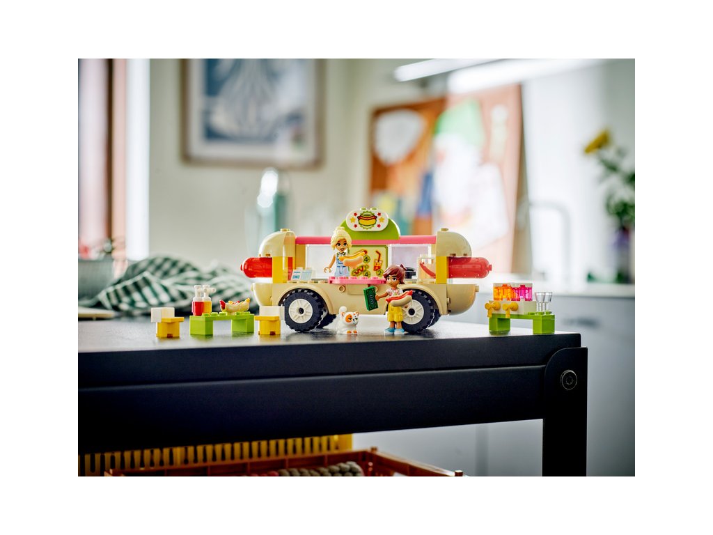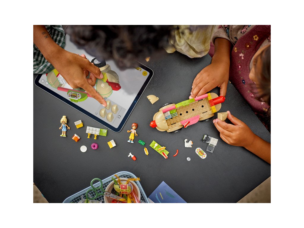 Děti od 4 let, které si rády hrají na vaření, se se stavebnicí LEGO® Friends (42633) Pojízdný stánek s hot dogy pustí do vyprávění. Stavebnice pomáhá dětem rozvíjet stavitelské dovednosti a součástí je sestavitelné vozidlo, 2 minipanenky, figurka kocoura a doplňky v podobě jídla, které inspirují k hraní rolí.