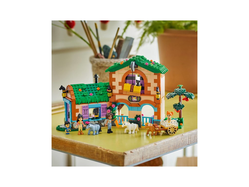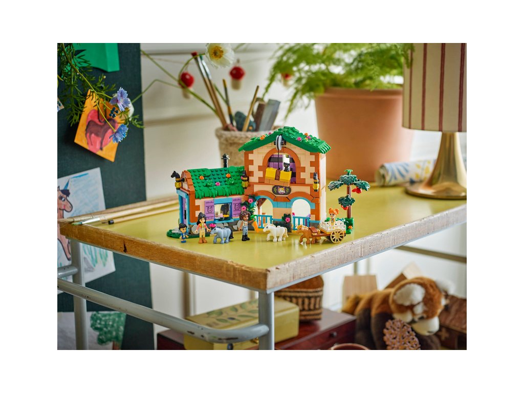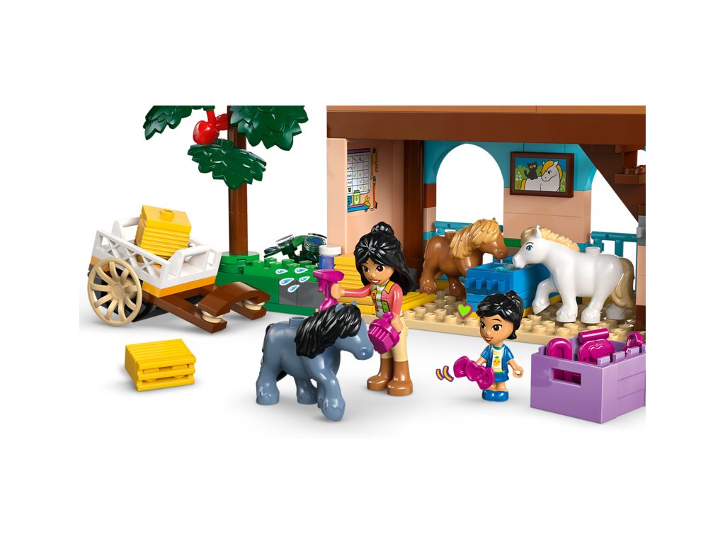 - Dárek pro milovníky koní – Stavebnice LEGO® Friends Ranč s poníky a stáj pro děti obsahuje sestavitelnou stáj, vozík, výtah na seno a další prvky, které potěší holky a kluky od 7 let