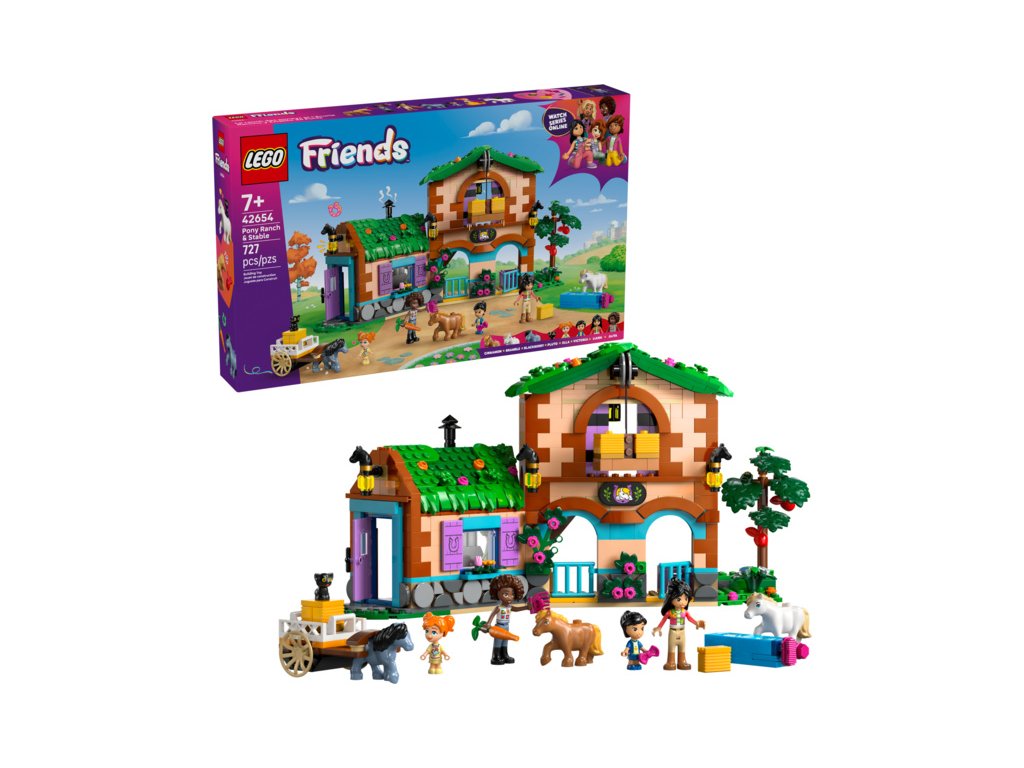 Představujeme vám stavebnici, kterou si zamilují všichni milovníci koní! Stavebnice LEGO® Friends (42654) Ranč s poníky a stáj inspiruje holky a kluky od 7 let k vymýšlení vlastních příběhů o přátelství a zvířátkách. Součástí je sestavitelný ranč s poníky se stájemi a obytnými prostory, vozík, 2 minipanenky, 2 mikropanenky, figurka kočky, 3 figurky poníků a spousta doplňků pro kreativní hraní.